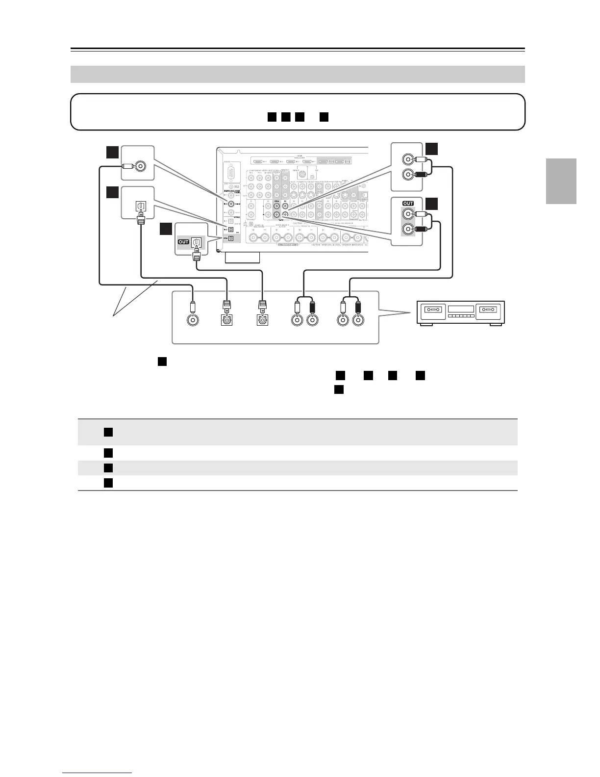 Connection AV receiver Signal flow Cassette, CDR, MD, or DAT recorder
