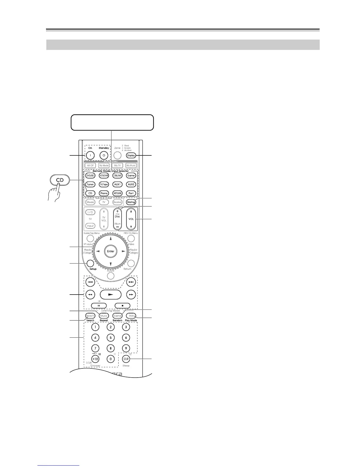The [CD] button is preprogrammed with the remote con-