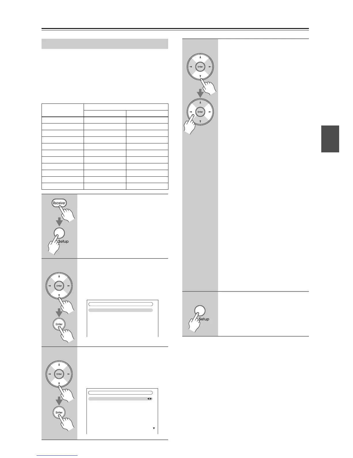receiver by using its [Setup] button, arrow buttons, and
