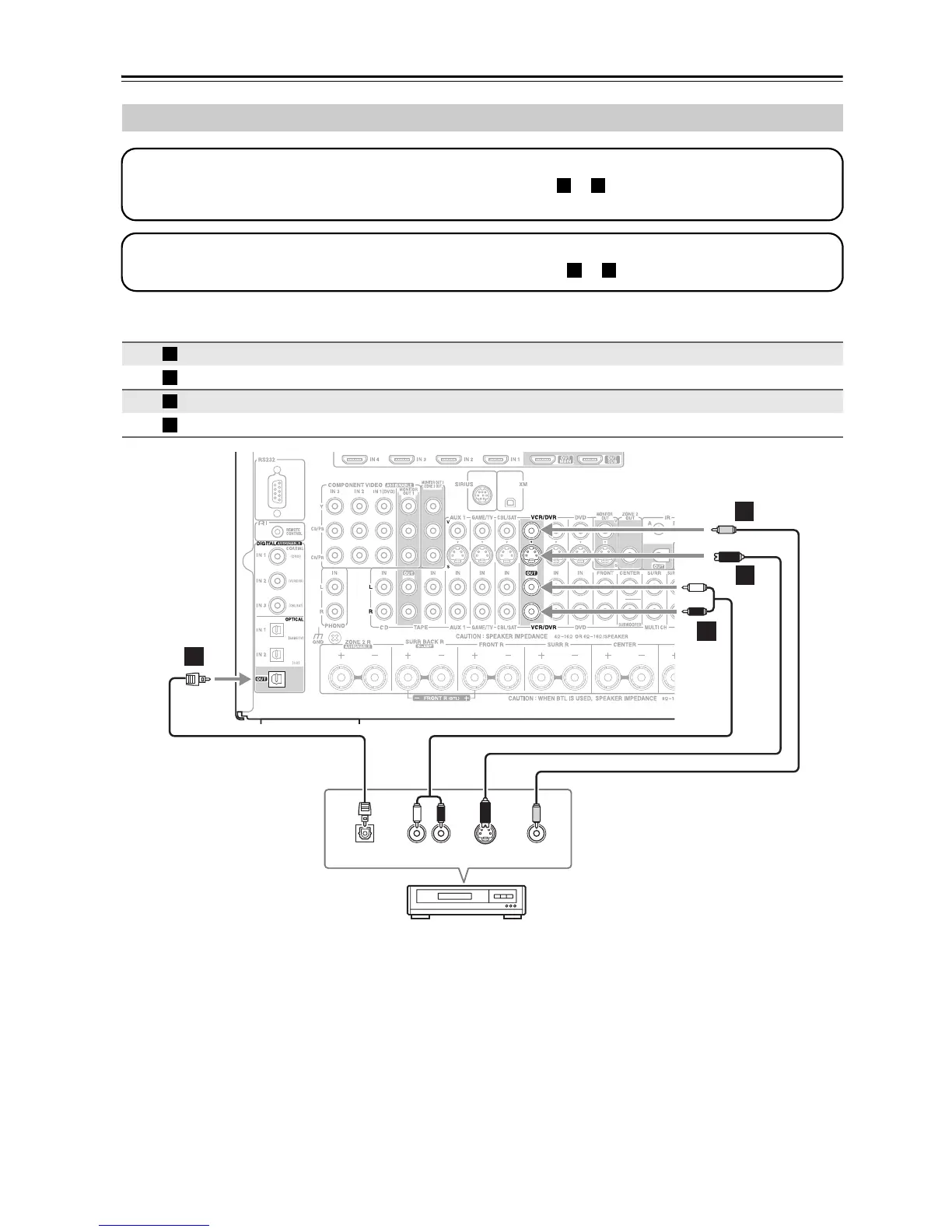 video source to be recorded must be connected to the AV receiver via the same type of connection.