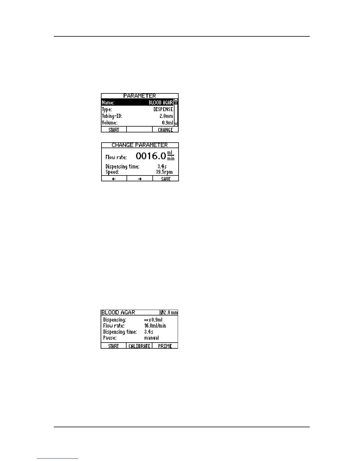 select the parameters and press CHANGE to set different values.