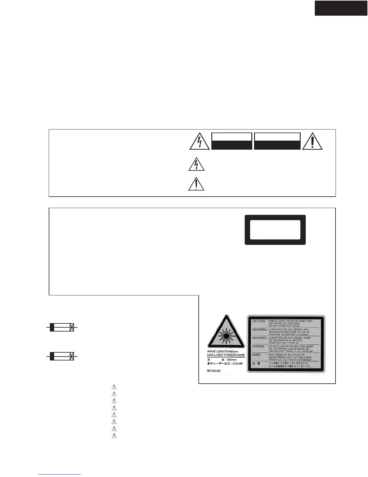 fire hazard, replace with same type fuse , For fuse rating, refer to