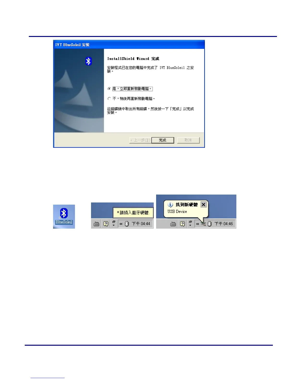 Figure 1-17: BlueSoleil on the Desktop and the system tray.