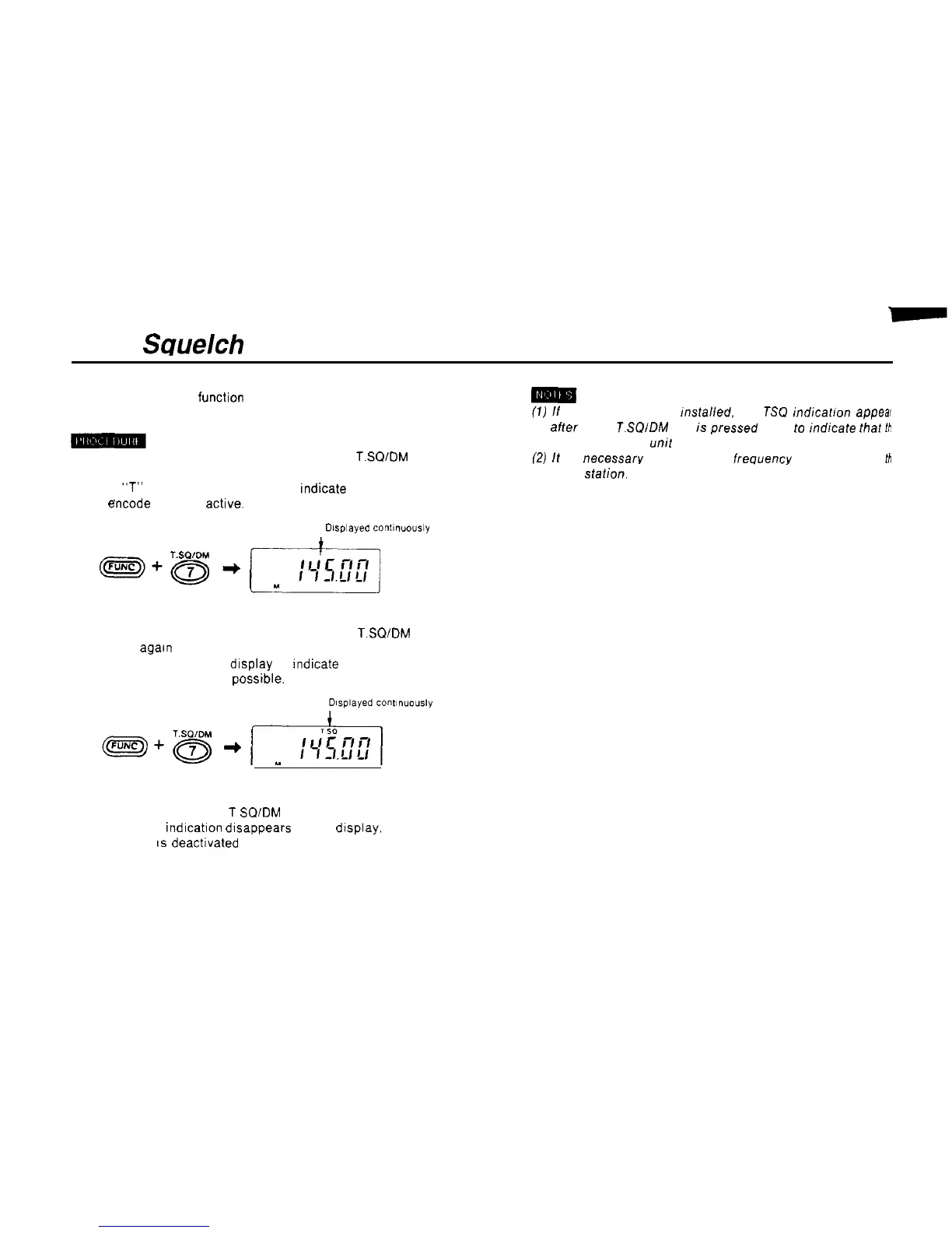 TSQ appears on the display to rndicate that tone