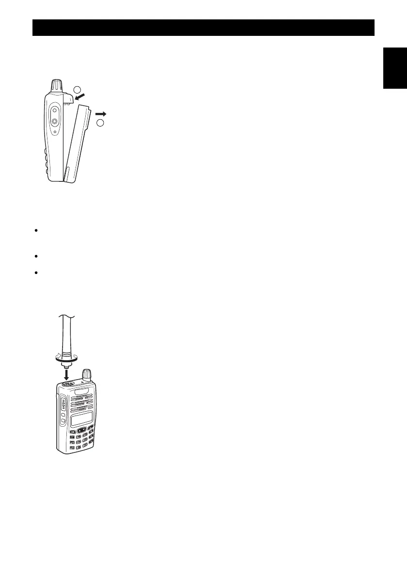 To remove the battery pack, press the battery lock on the radio (item 1) and