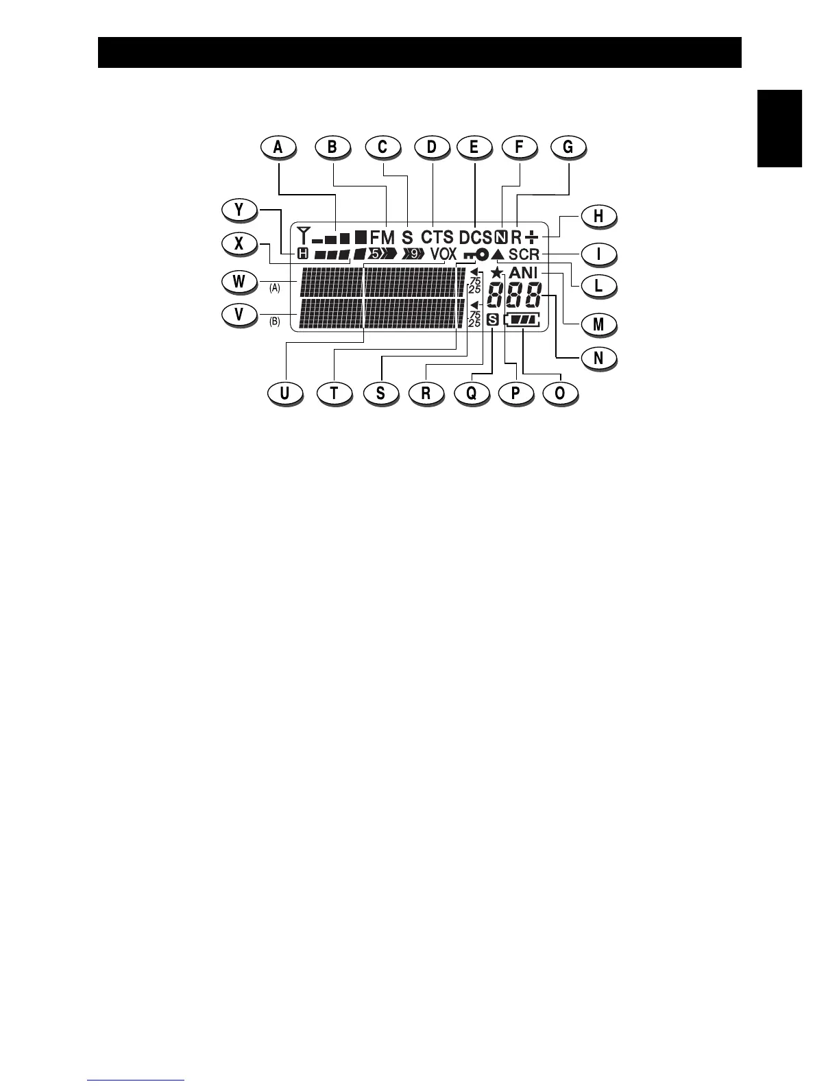 When the dual watch function is OFF, it indicates the secondary receiving frequency.