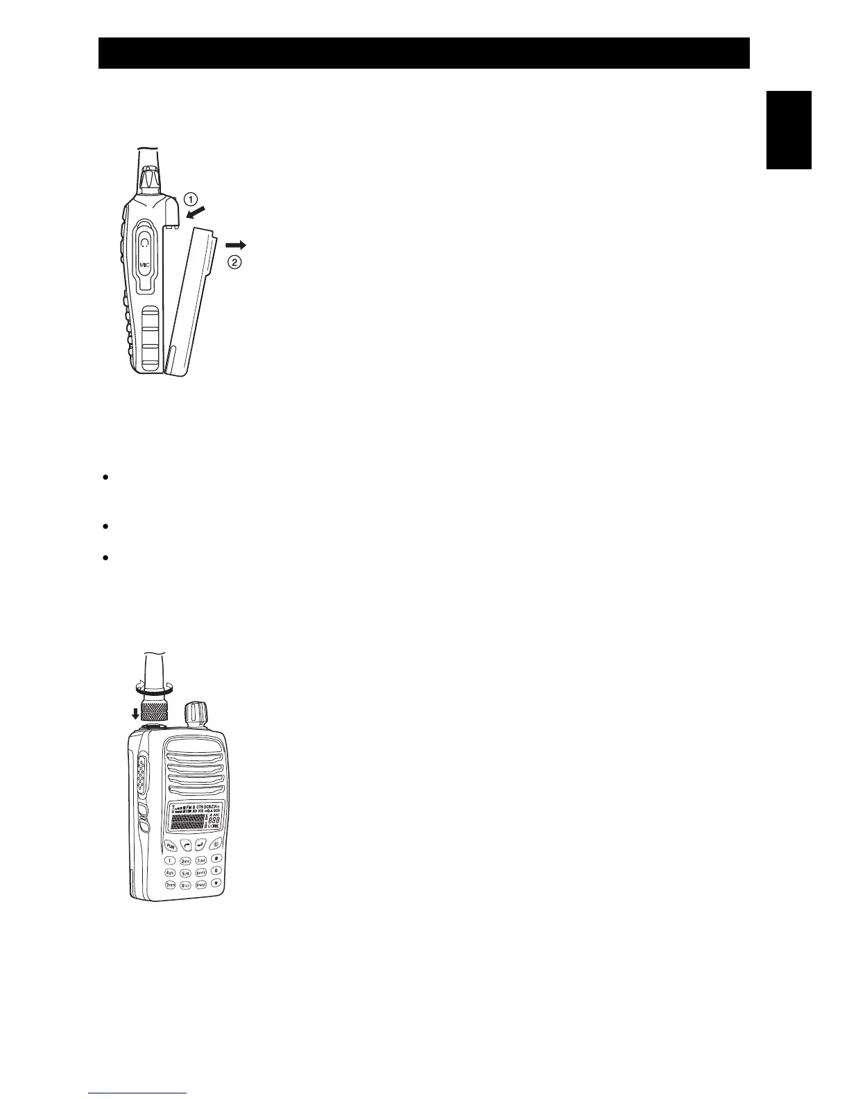 the radio. Gently turn the antenna clockwise until locked.