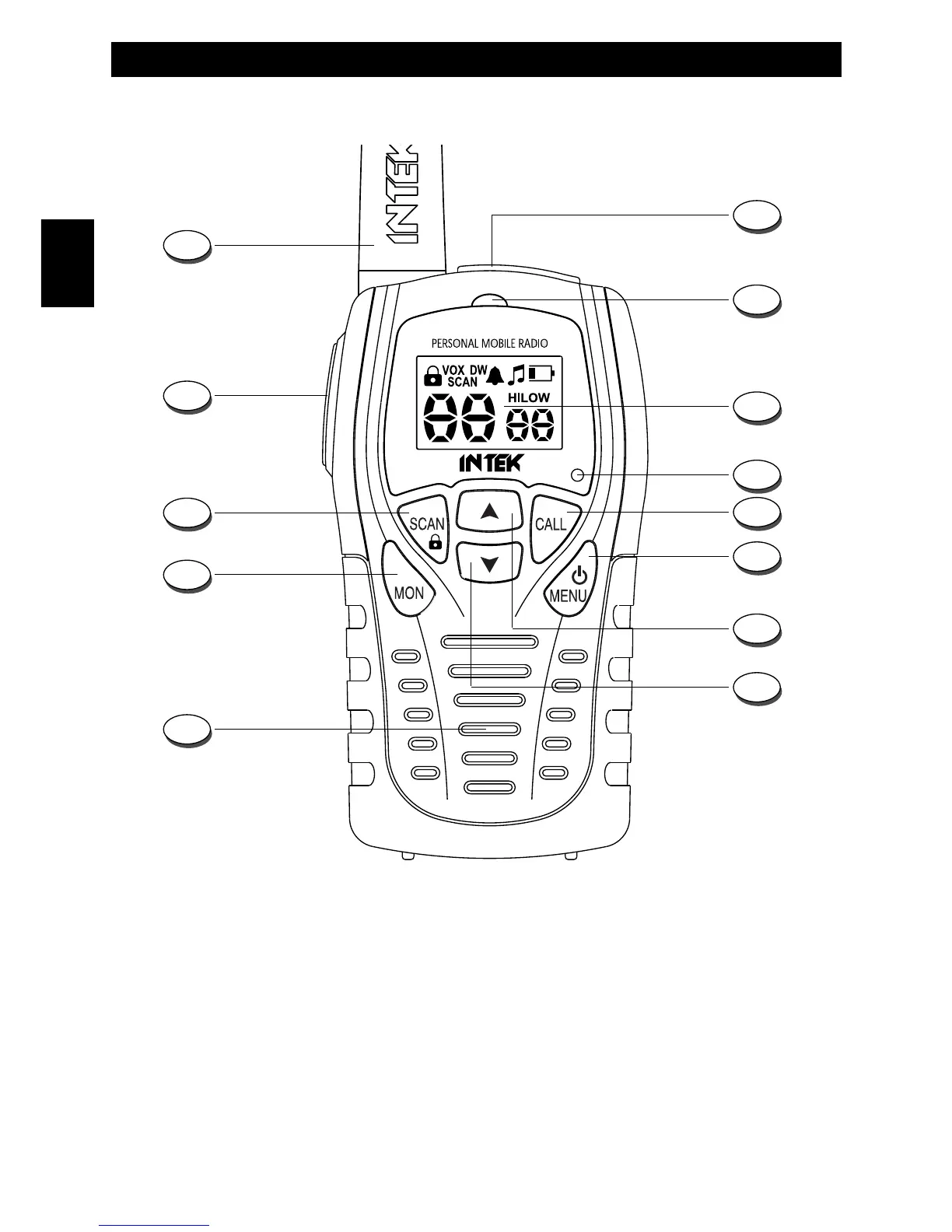 Presa per il collegamento di un microfono-altoparlante esterno e del carica batterie da parete 230VAC in dotazione.