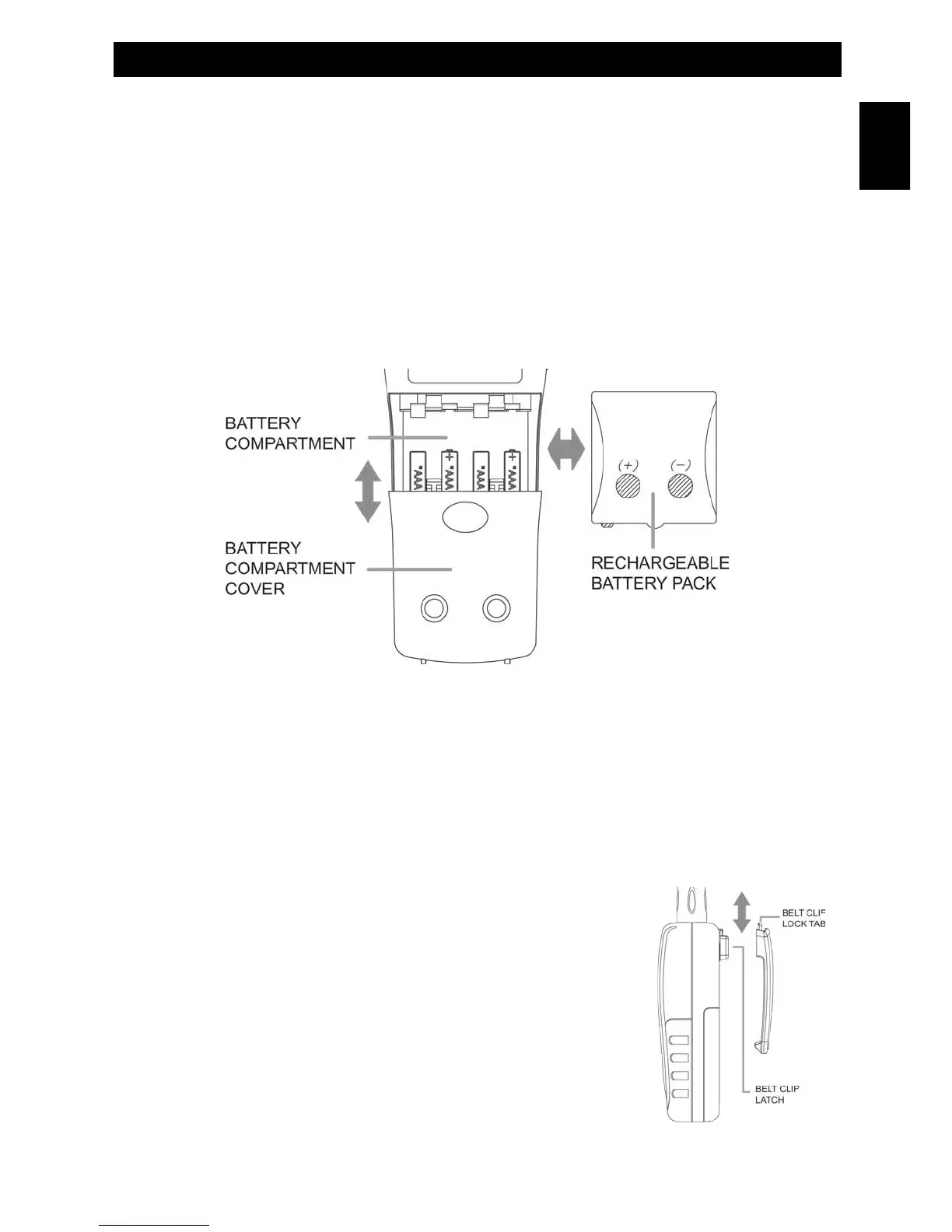 the clip from the belt for an easy removal or installation of battery. To install the battery please refer to the following