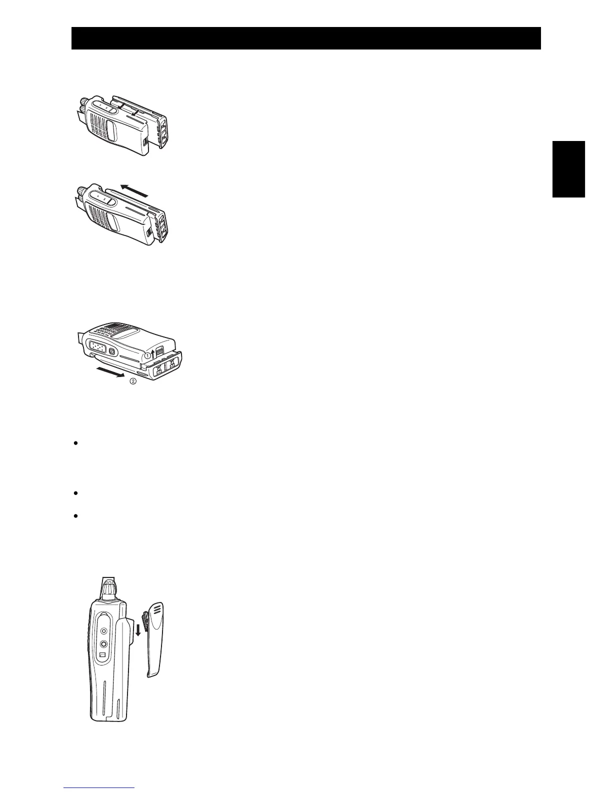 Se necessario, applicare la clip da cintura al ricetrasmettitore, facendola