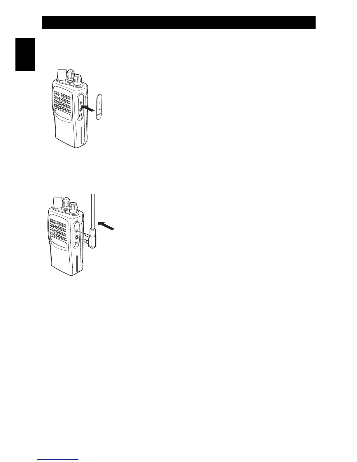 THE RUBBER FLEXIBLE ANTENNA IS FIXED AND NOT REMOVABLE. DO NOT TRY TO TURN OR