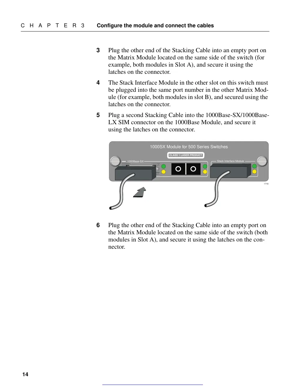 5 Plug a second Stacking Cable into the 1000Base-SX/1000Base-