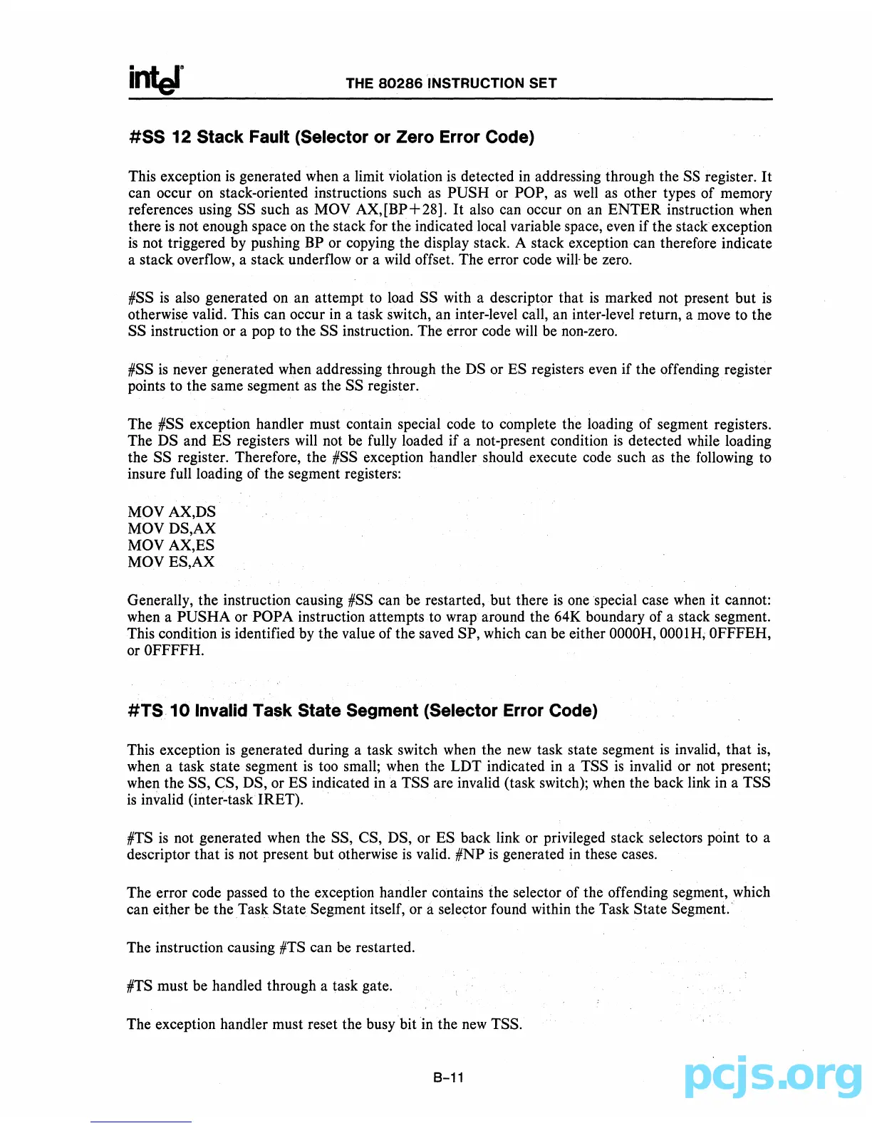the SS register. Therefore, the #SS exception handler should execute code such as the following to