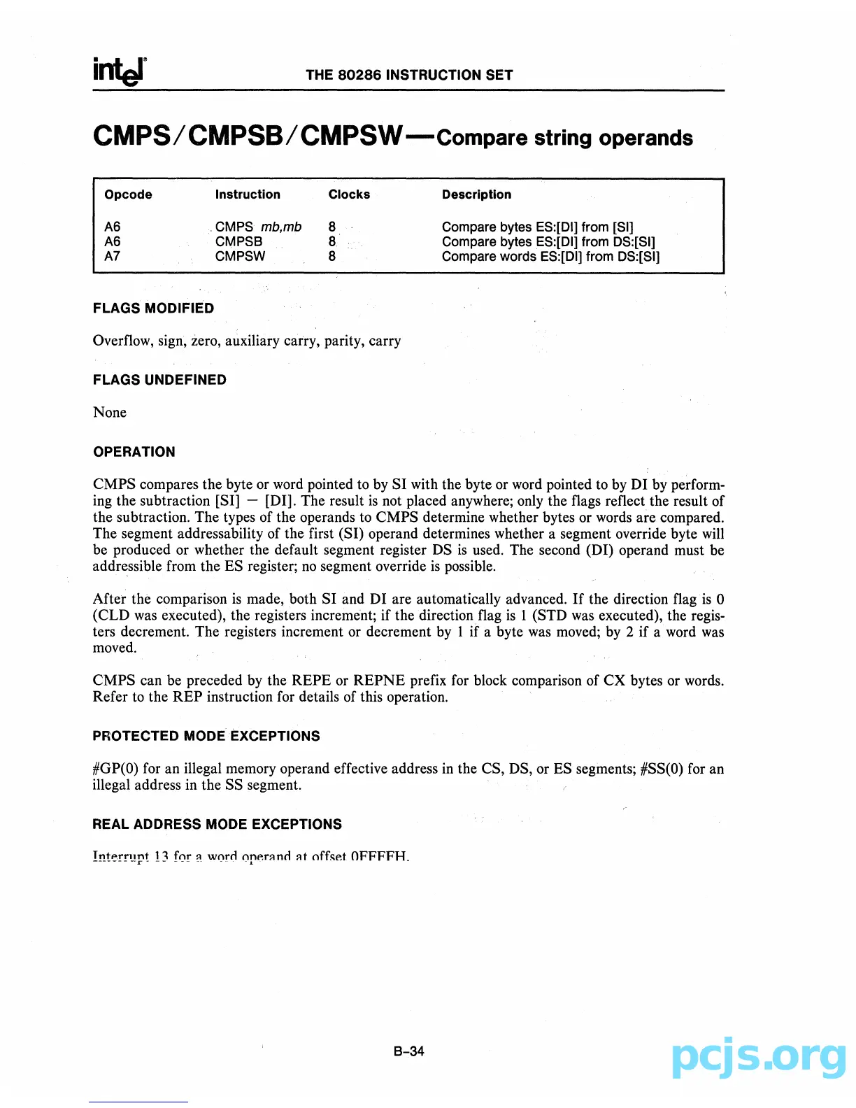 the REPE or REPNE prefix for block comparison of CX bytes or words.
