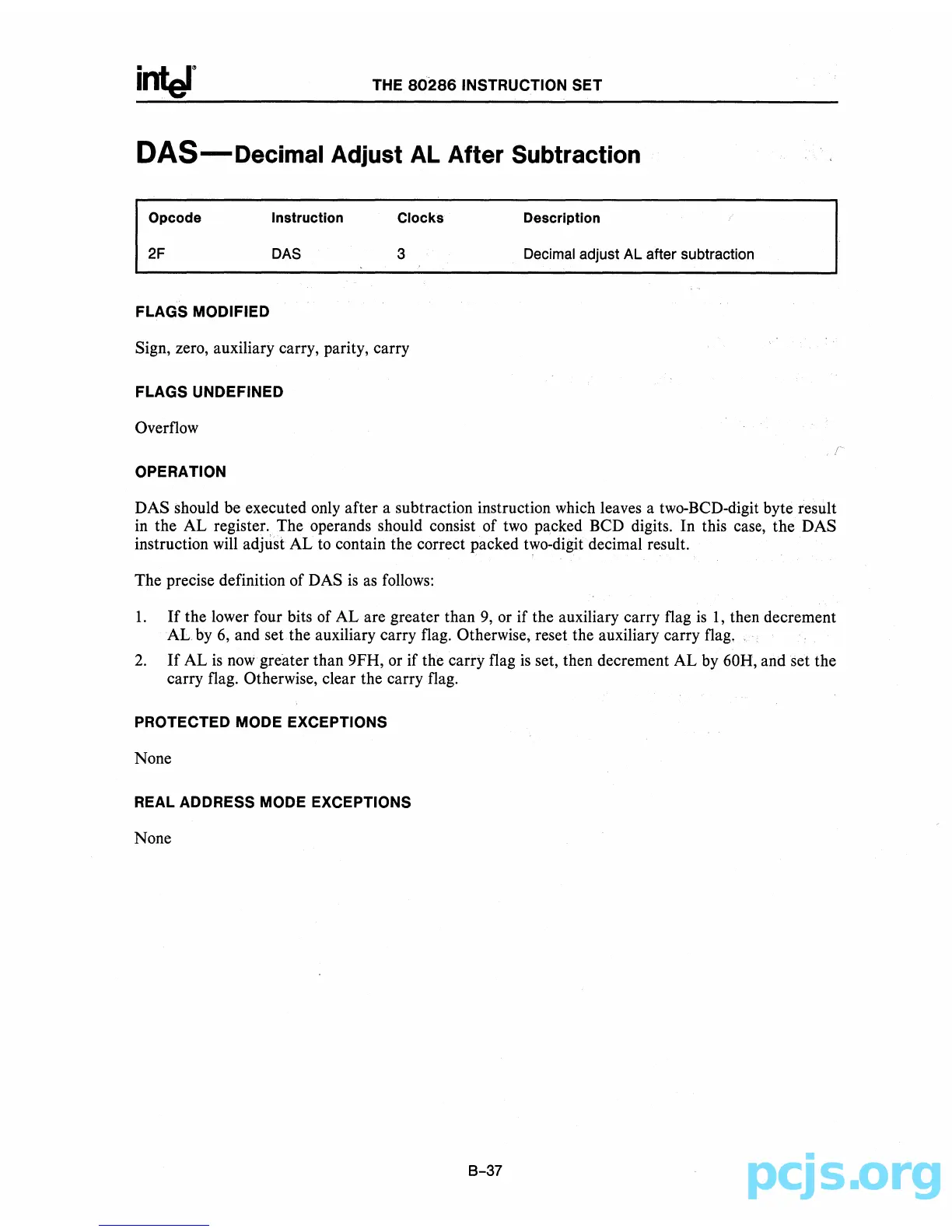 DAS should be executed only after a subtraction instruction which leaves a two-BCD-digit byte result