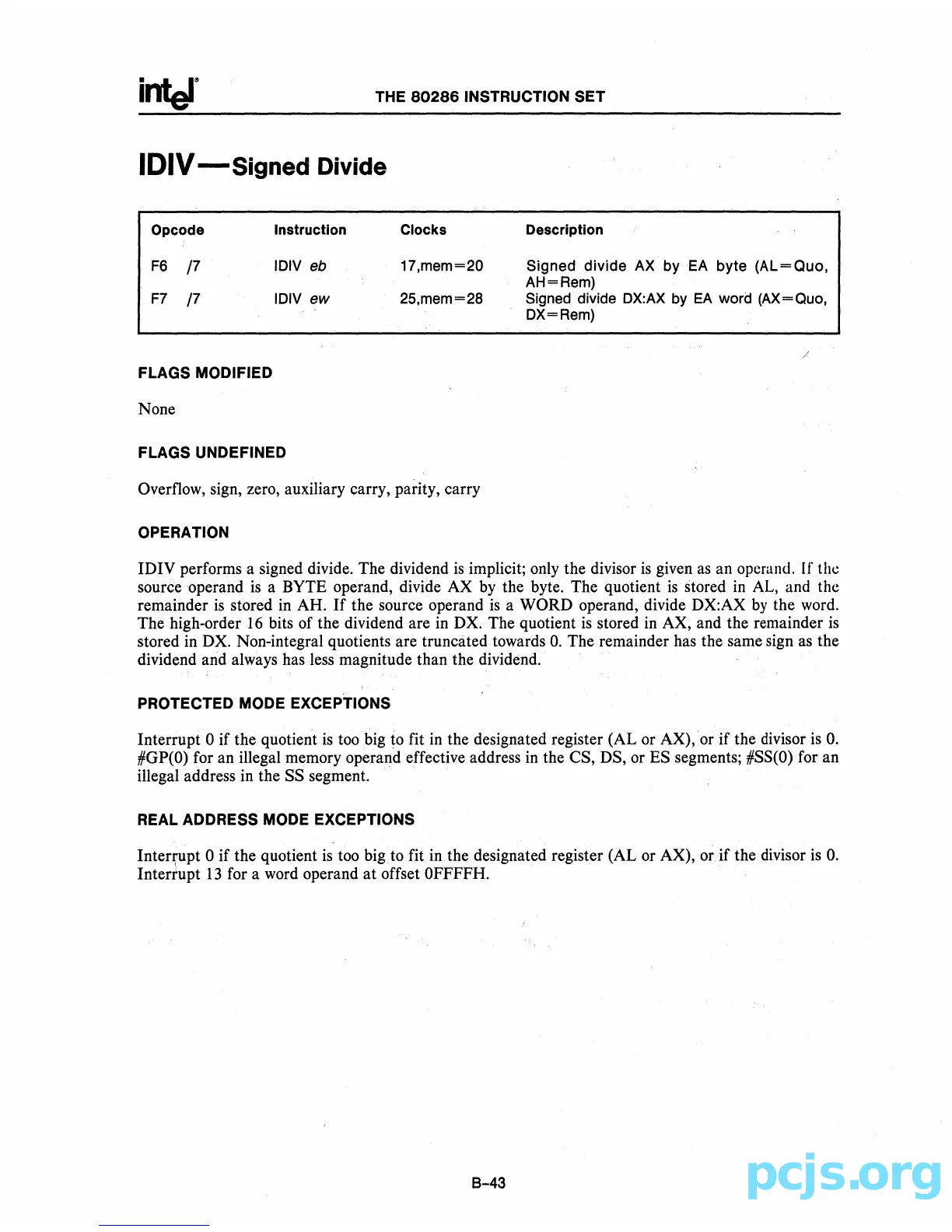 too big to fit in the designated register (AL or AX), 'or if the divisor