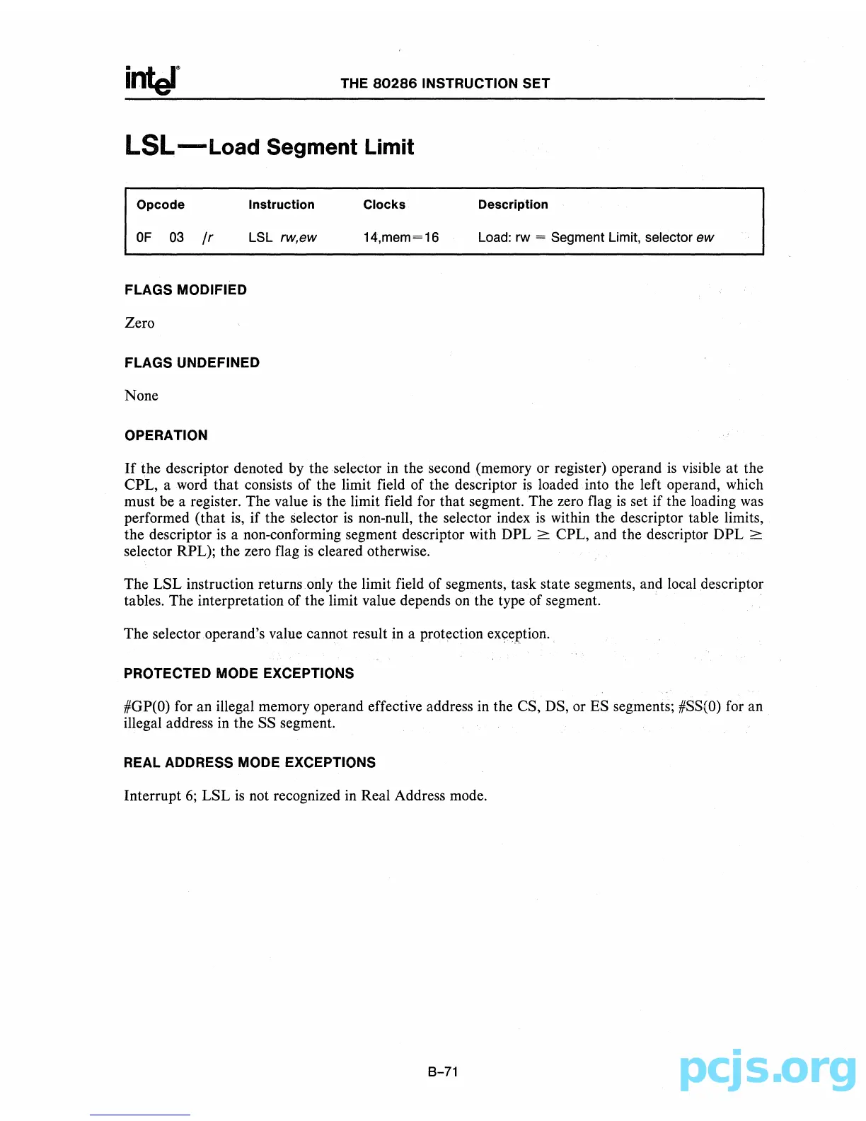 The LSL instruction returns only the limit field of segments,task state segments, and local descriptor
