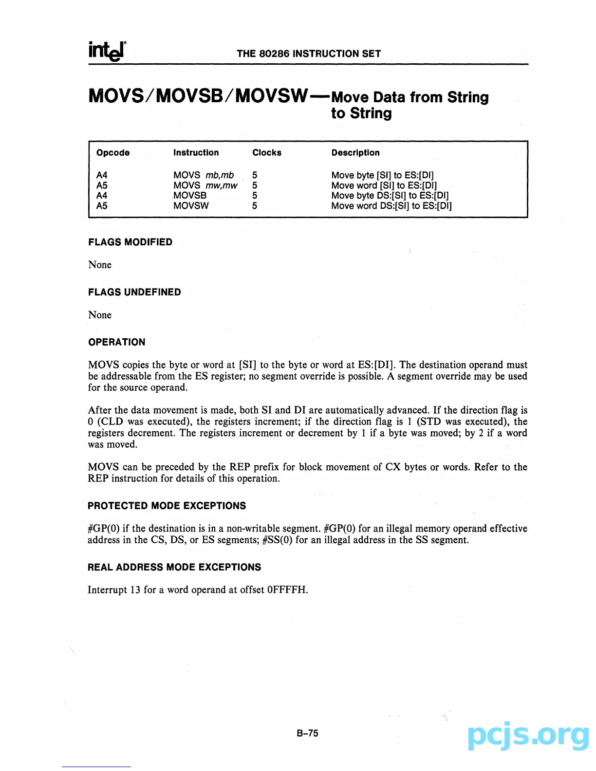 MOYS can be preceded by the REP prefix for block movement of CX bytes or words. Refer to the