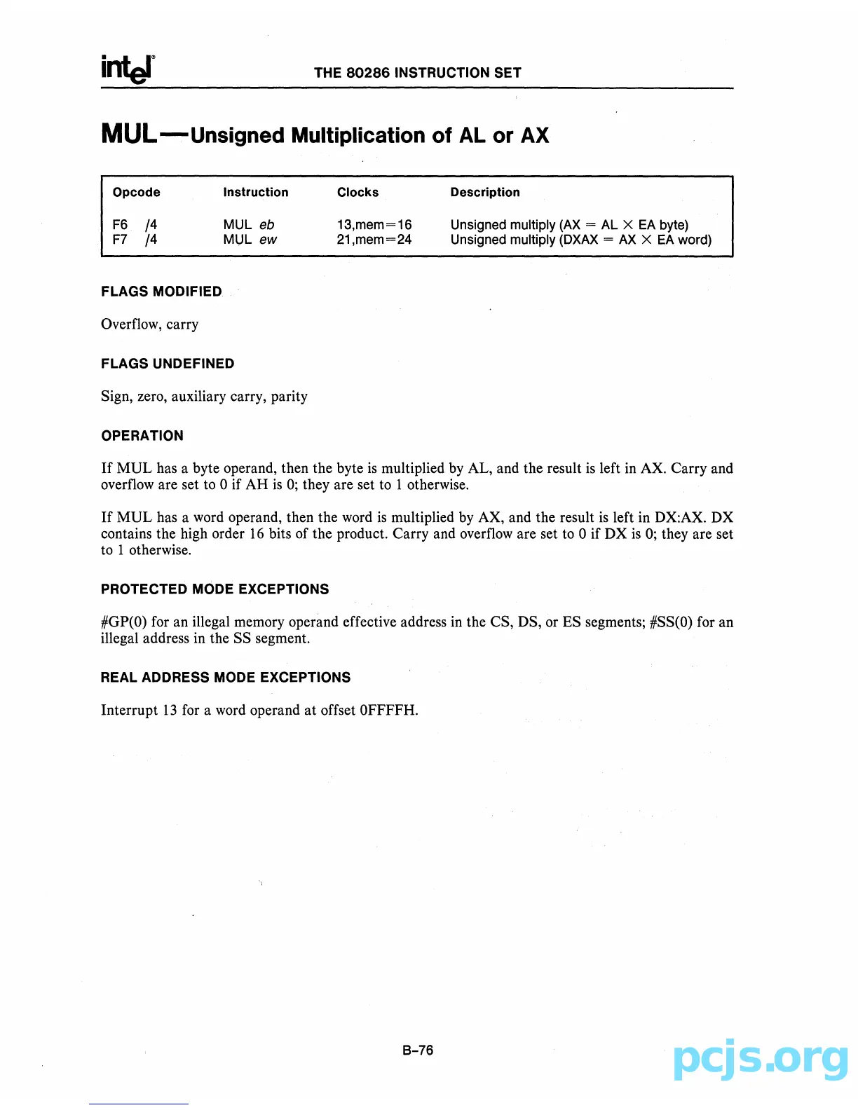 bits of the product. Carry and overflow are set to 0 if DX