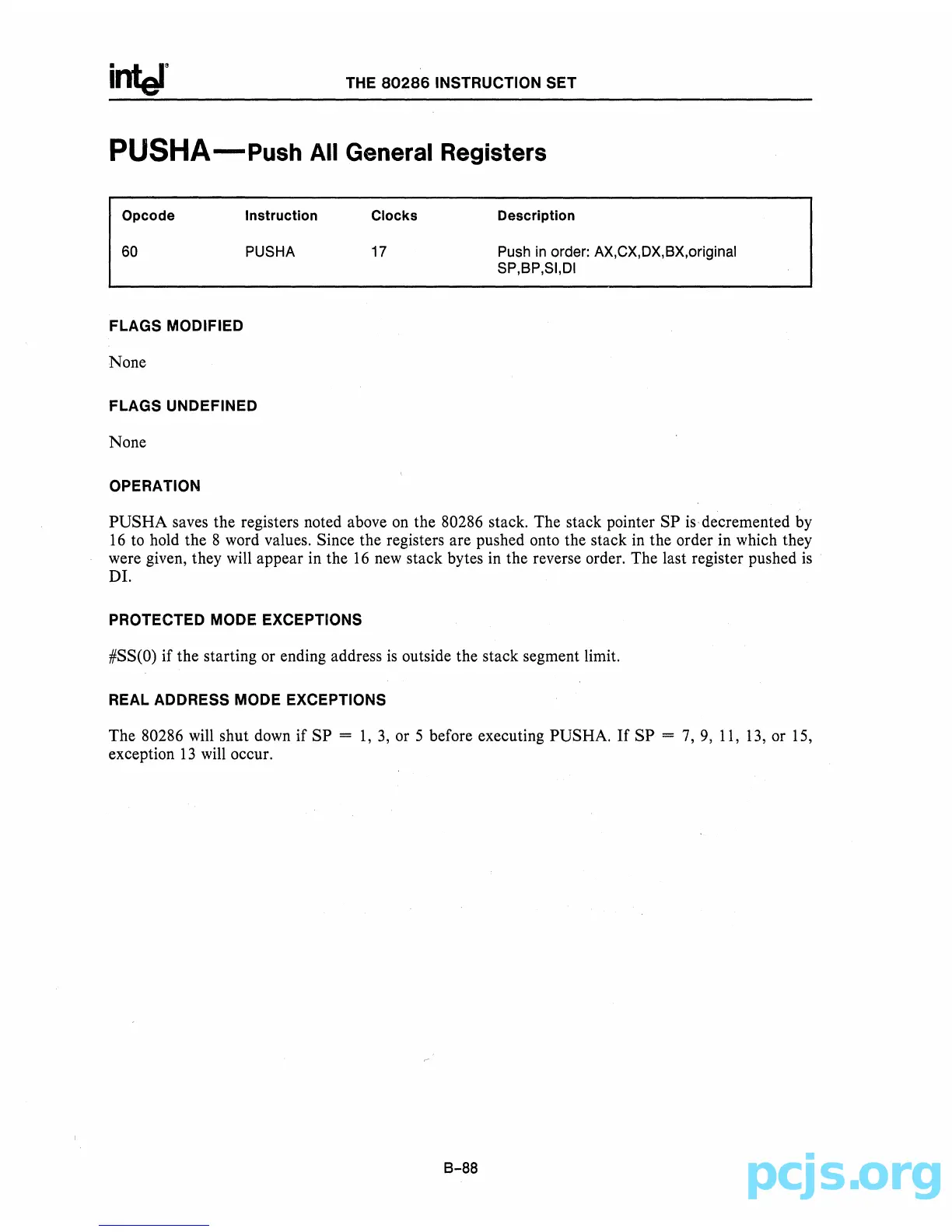 saves the registers noted above on the 80286 stack. The stack pointer