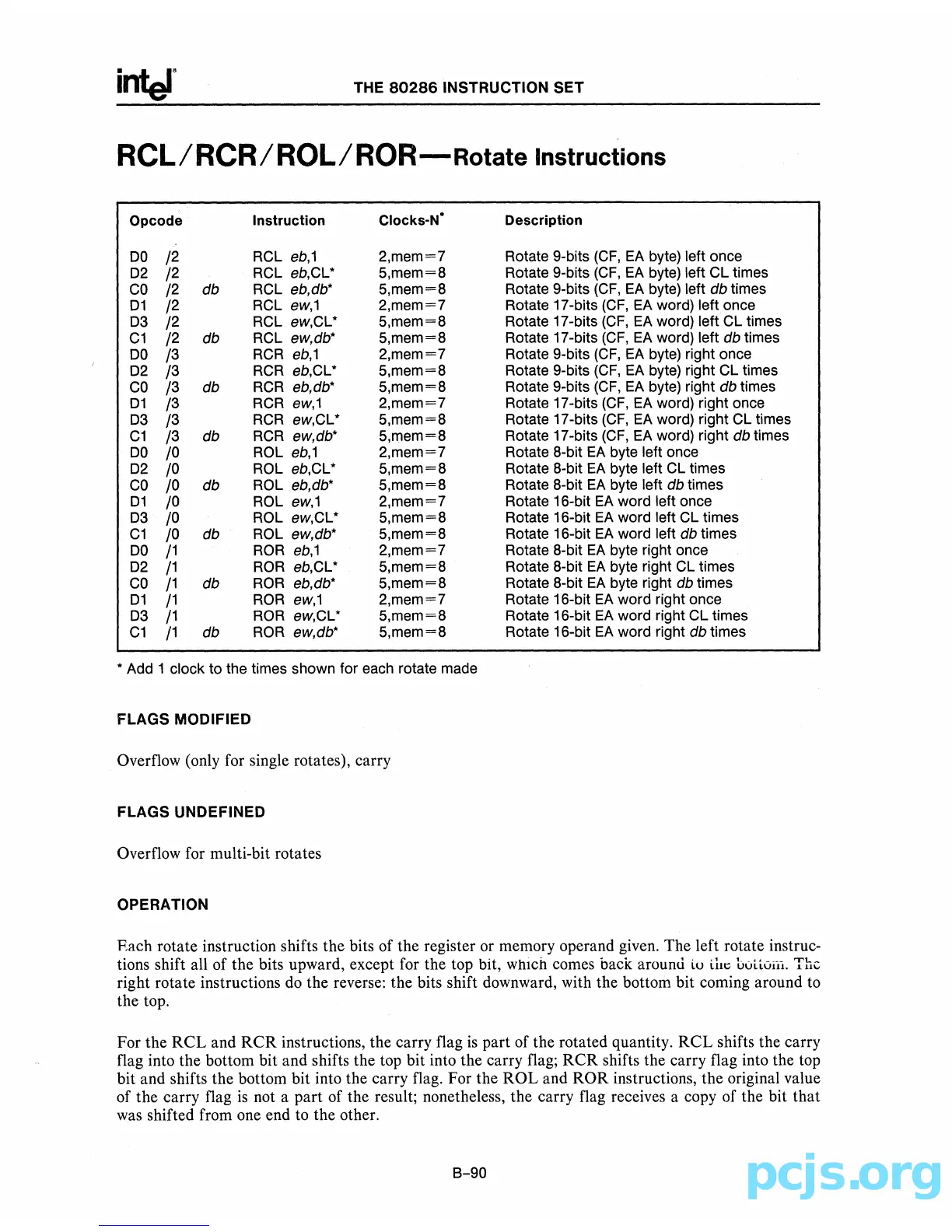 Each rotate instruction shifts the bits of the register or memory operand given. The left rotate instruc-