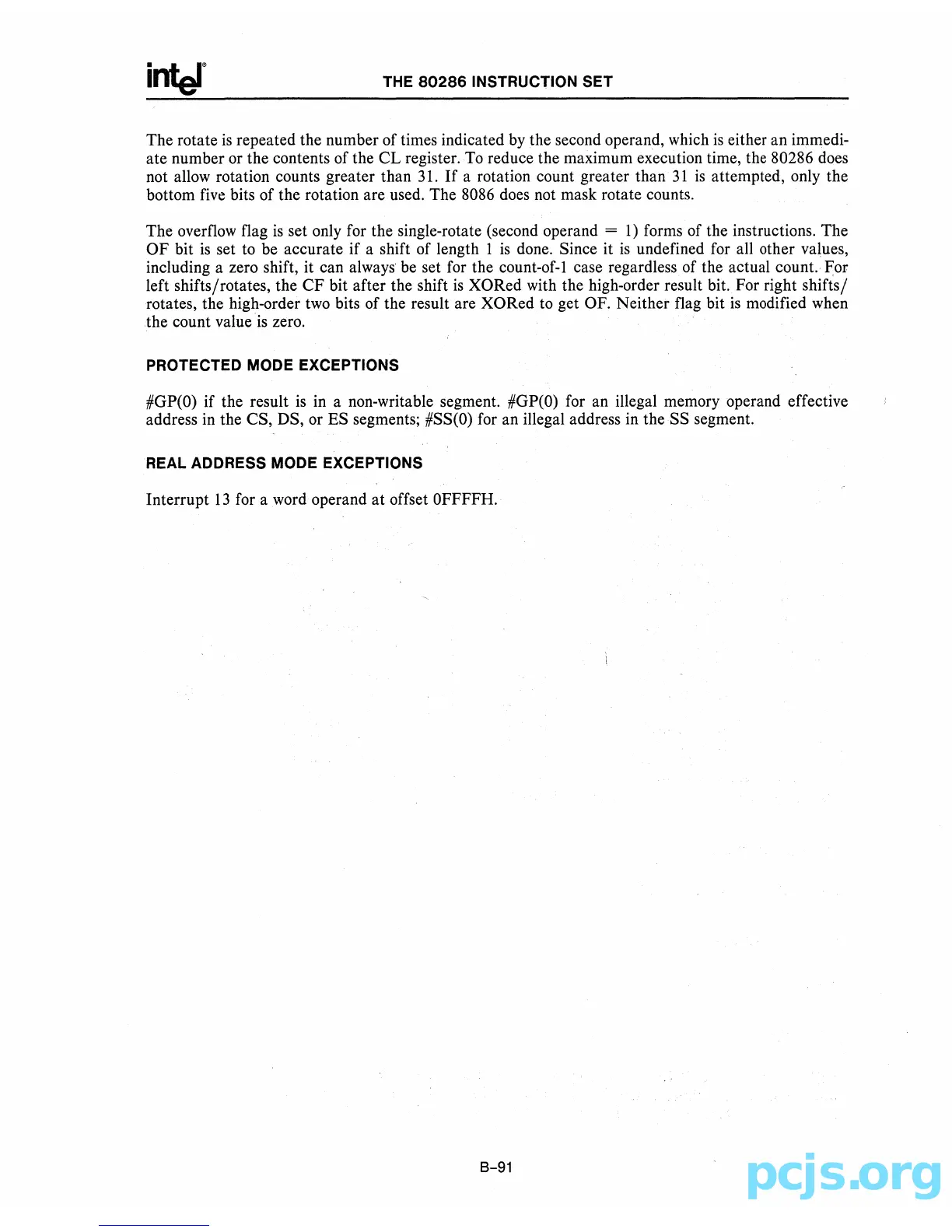 bits of the rotation are used. The 8086 does not mask rotate counts.