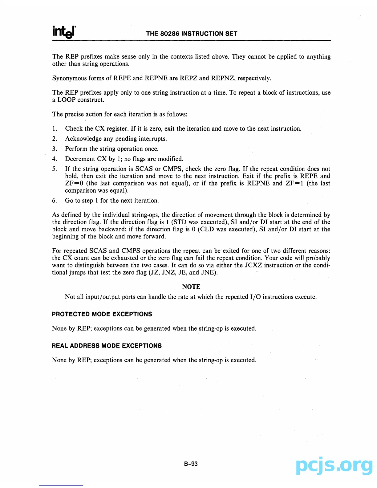 REP; exceptions can be generated when the string-op