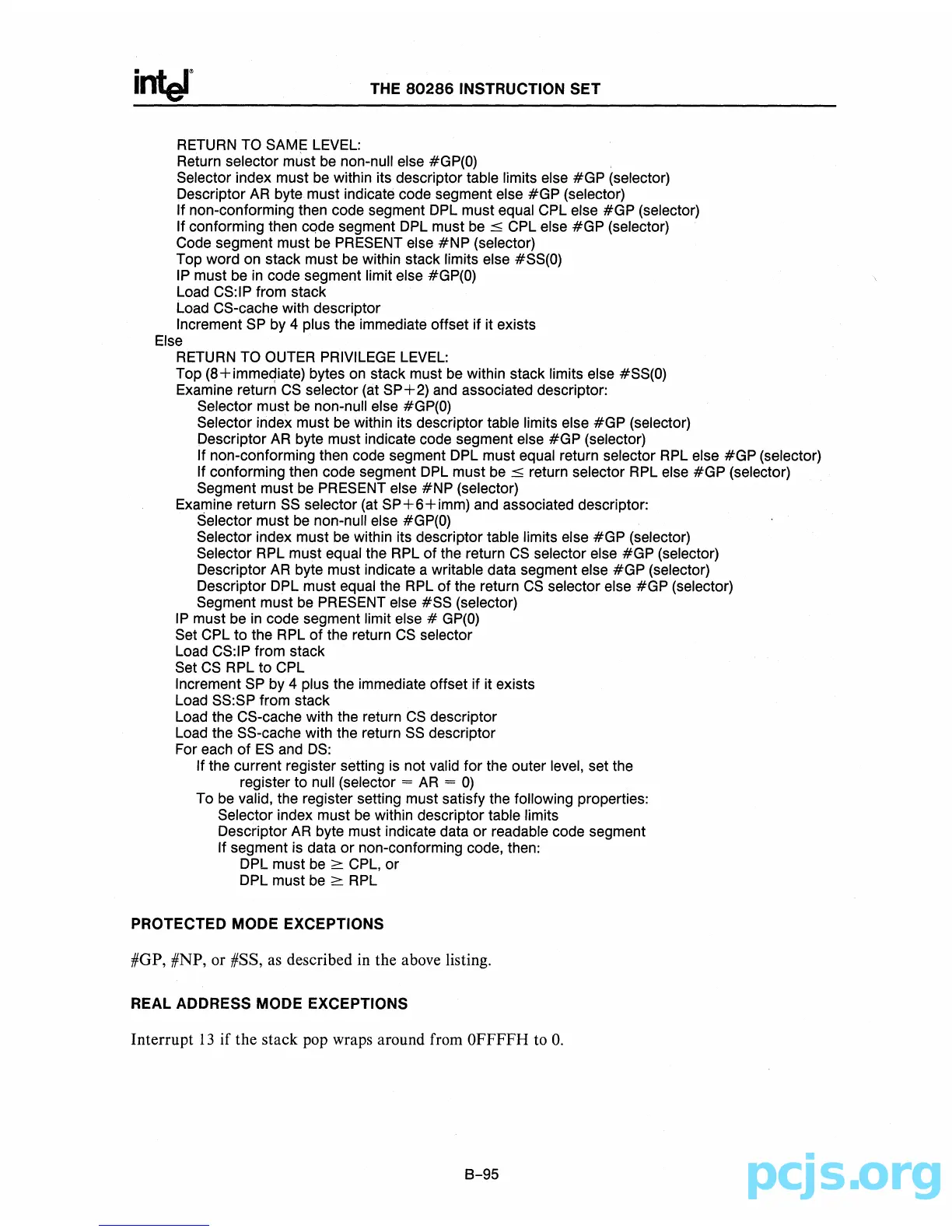 REAL ADDRESS MODE EXCEPTIONS