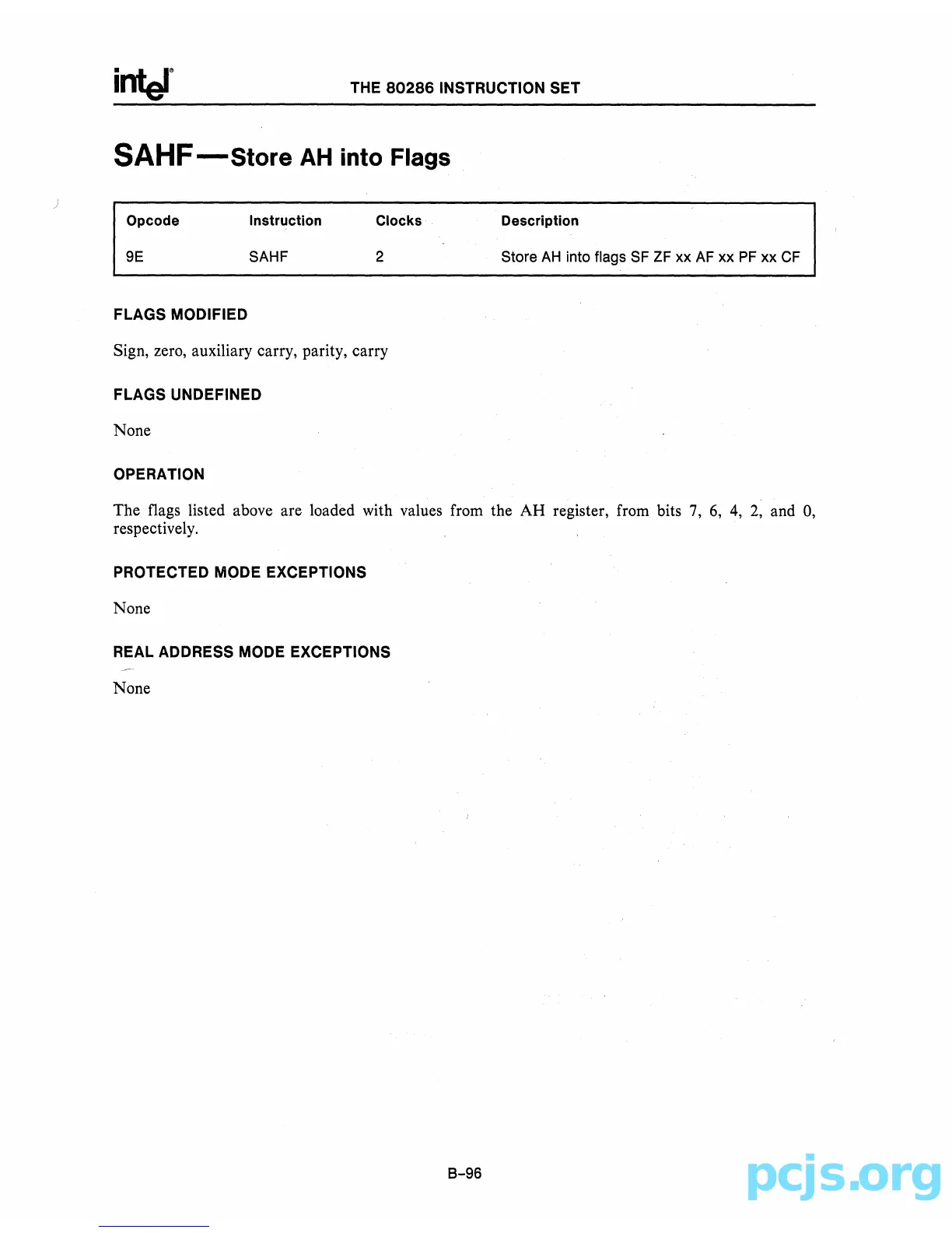 The flags listed above are loaded with values from the AH register, from bits