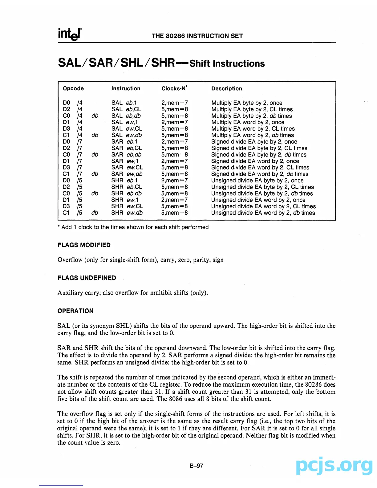 set only if the single-shift forms of the instructions are used. For left shifts,