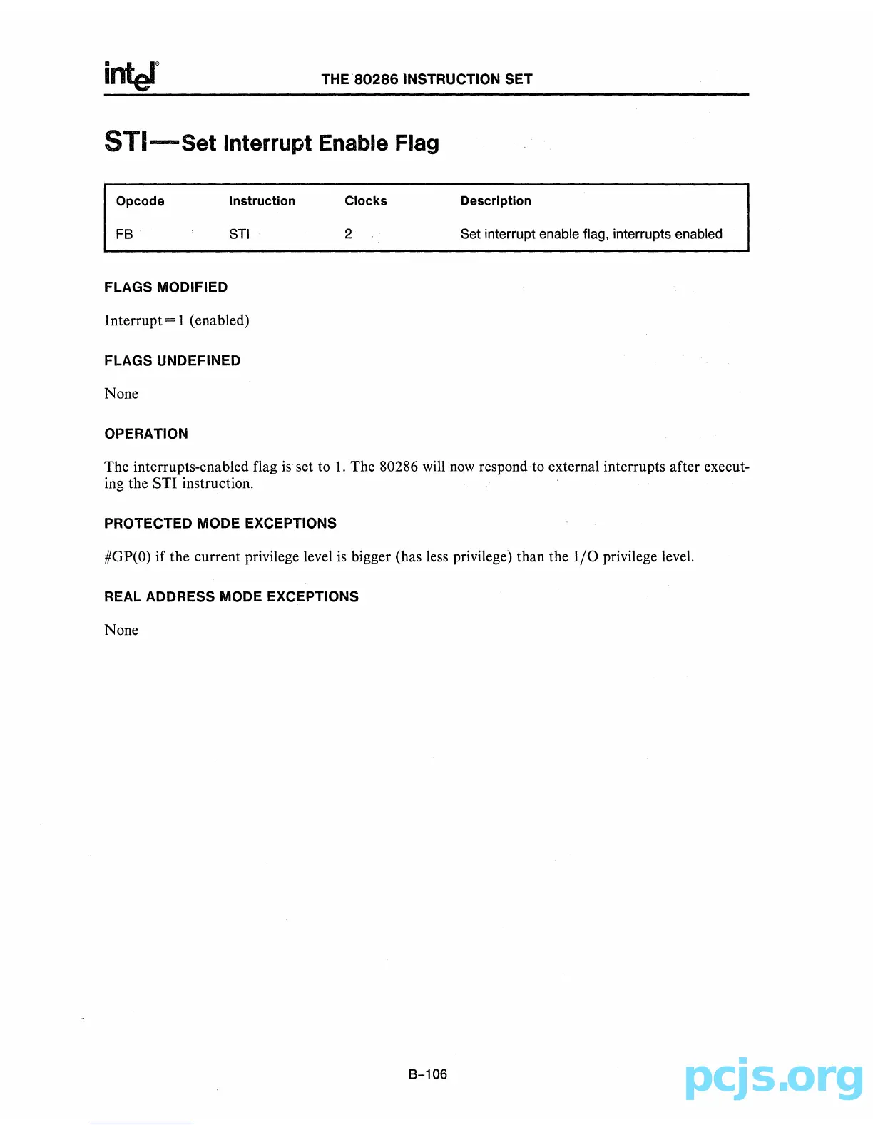 STI 2 Set interrupt enable flag, interrupts enabled