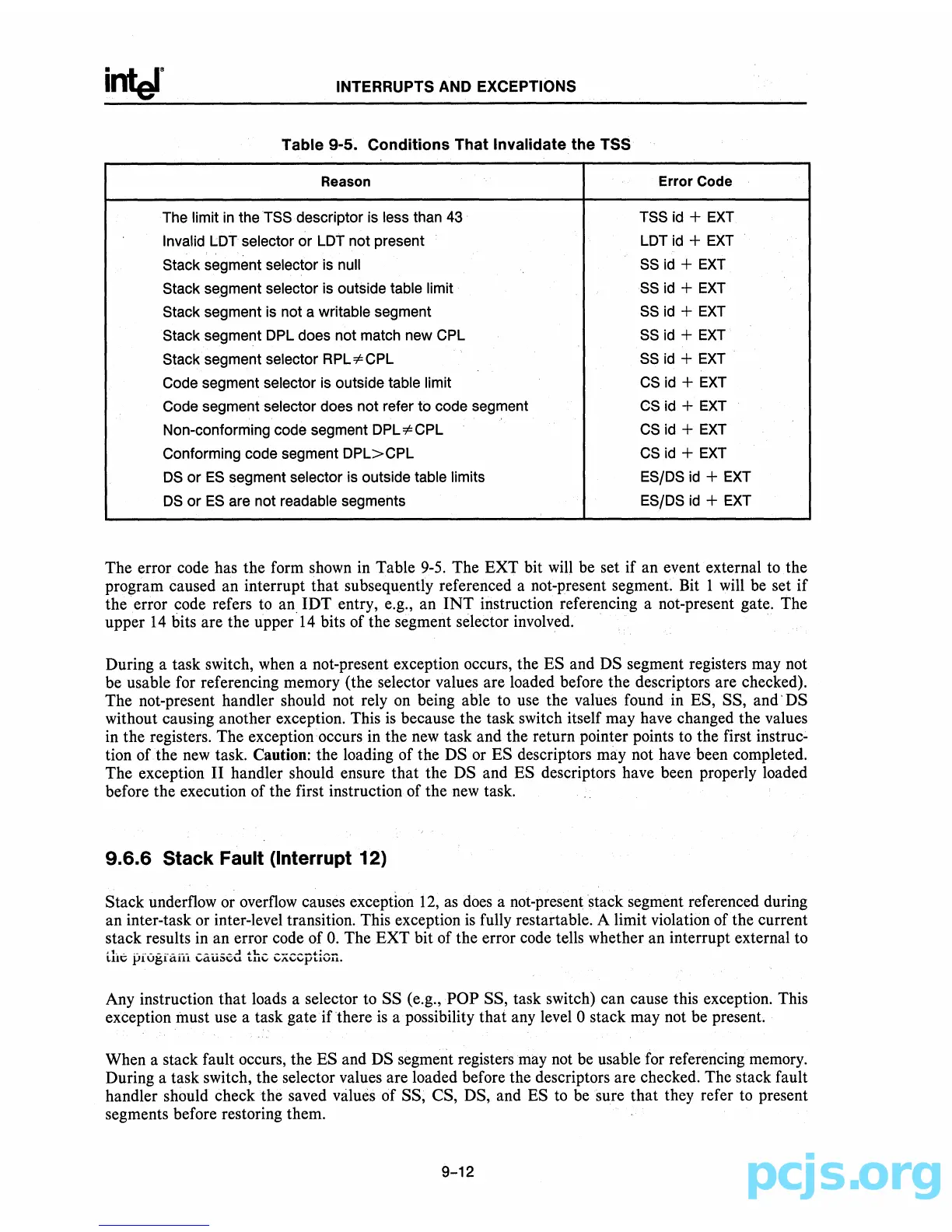 Any instruction that loads a selector to SS (e.g., POP SS, task switch) can cause this exception. This