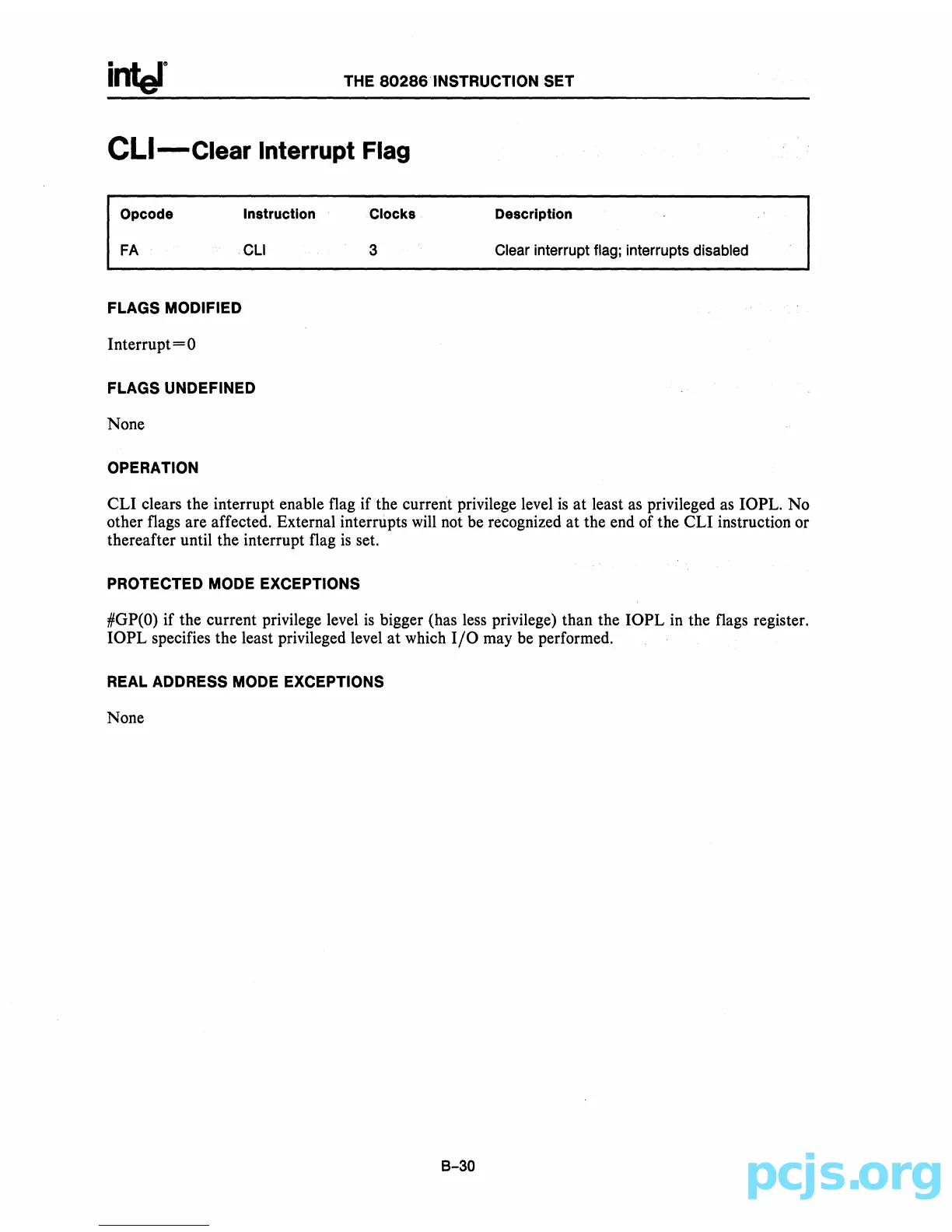 clears the interrupt enable flag if the current privilege level