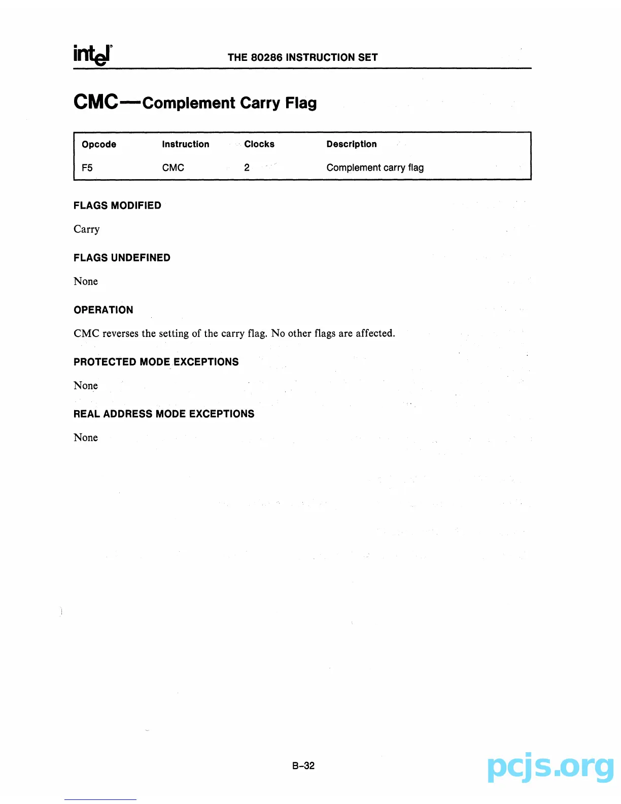 CMC reverses the setting of the carry flag. No other flags are affected.