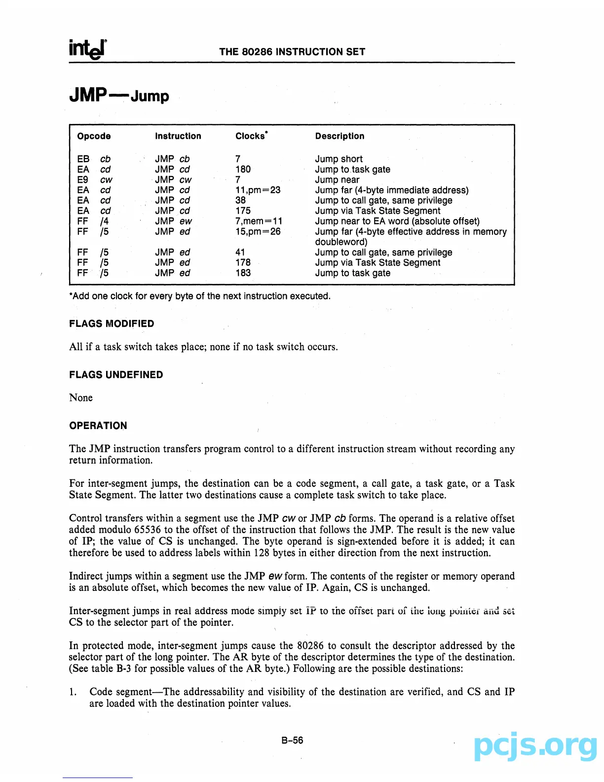 For inter-segment jumps, the destination can be a code segment, a call gate, a task gate, or a Task