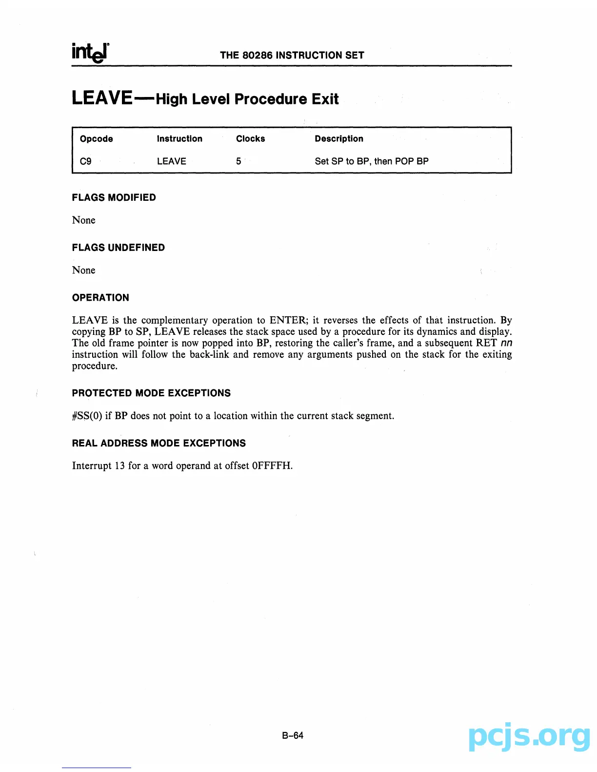ENTER; it reverses the effects of that instruction.