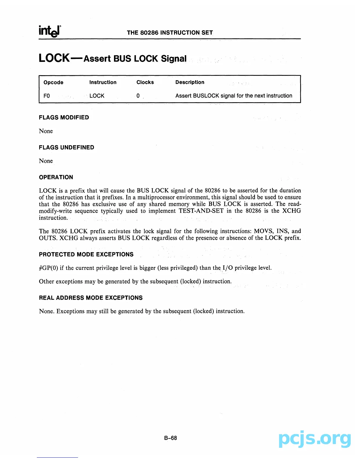 The 80286 LOCK prefix activates the lock signal for the following instructions: MOYS, INS, and