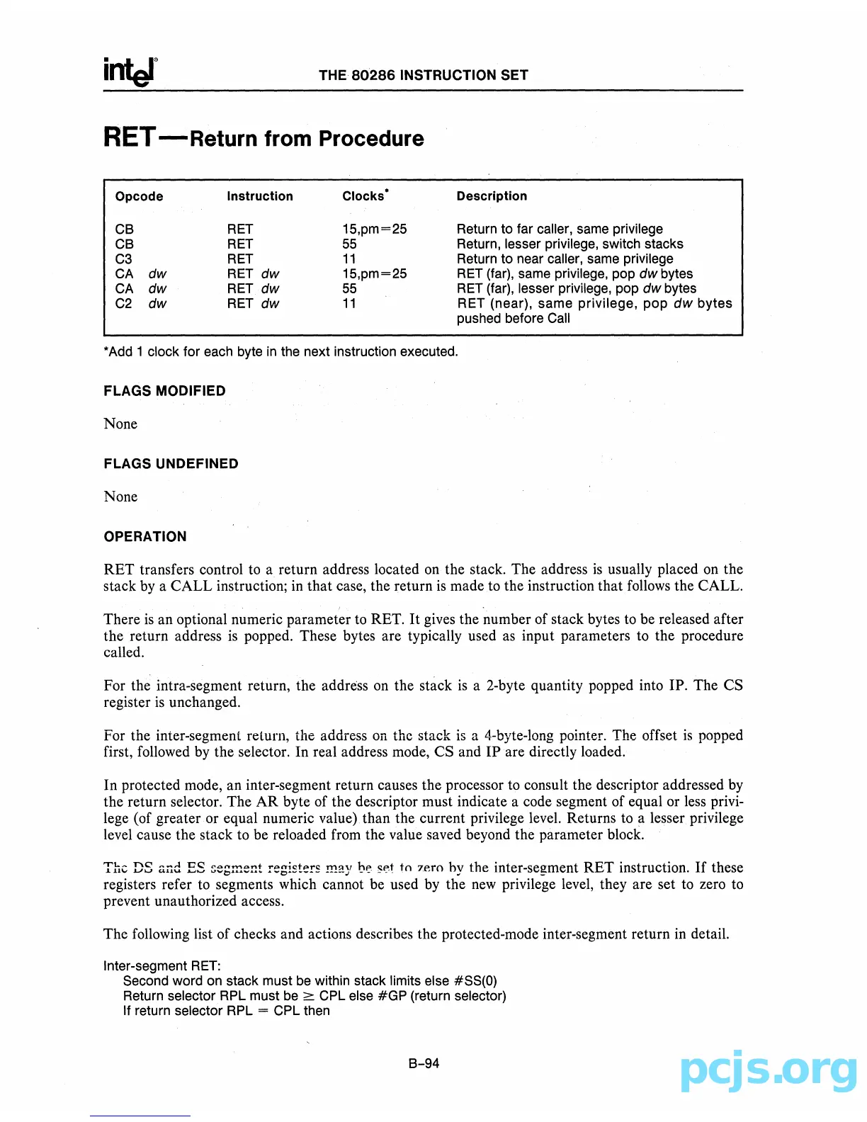 The following list of checks and actions describes the protected-mode inter-segment return
