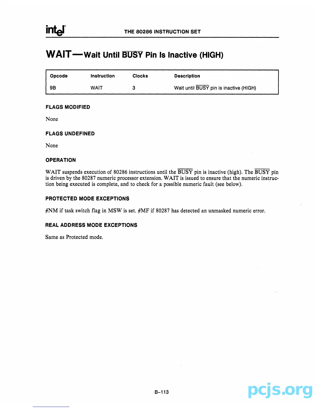 driven by the 80287 numeric processor extension. WAIT