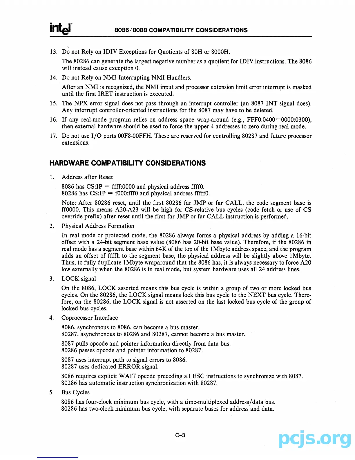 Any interrupt controller-oriented instructions for the 8087 may have to be deleted.