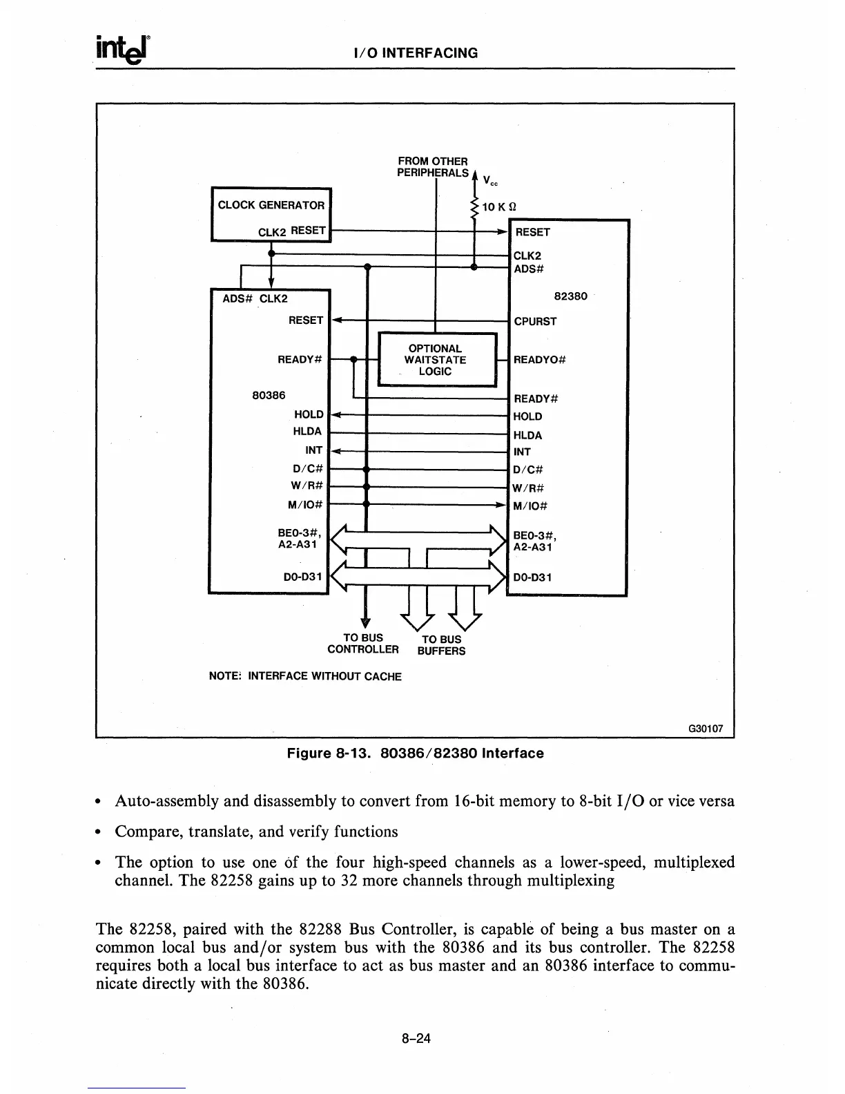 system bus with the 80386 and its bus controller. The 82258