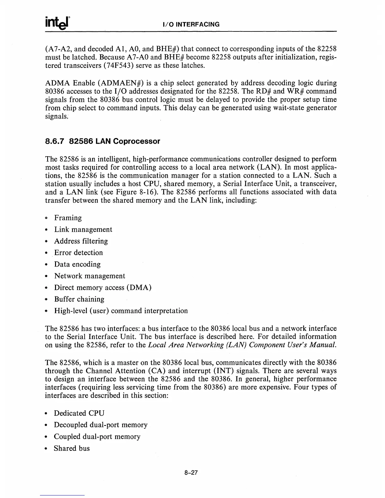 using the 82586, refer to the Local Area Networking (LAN) Component User's Manual.