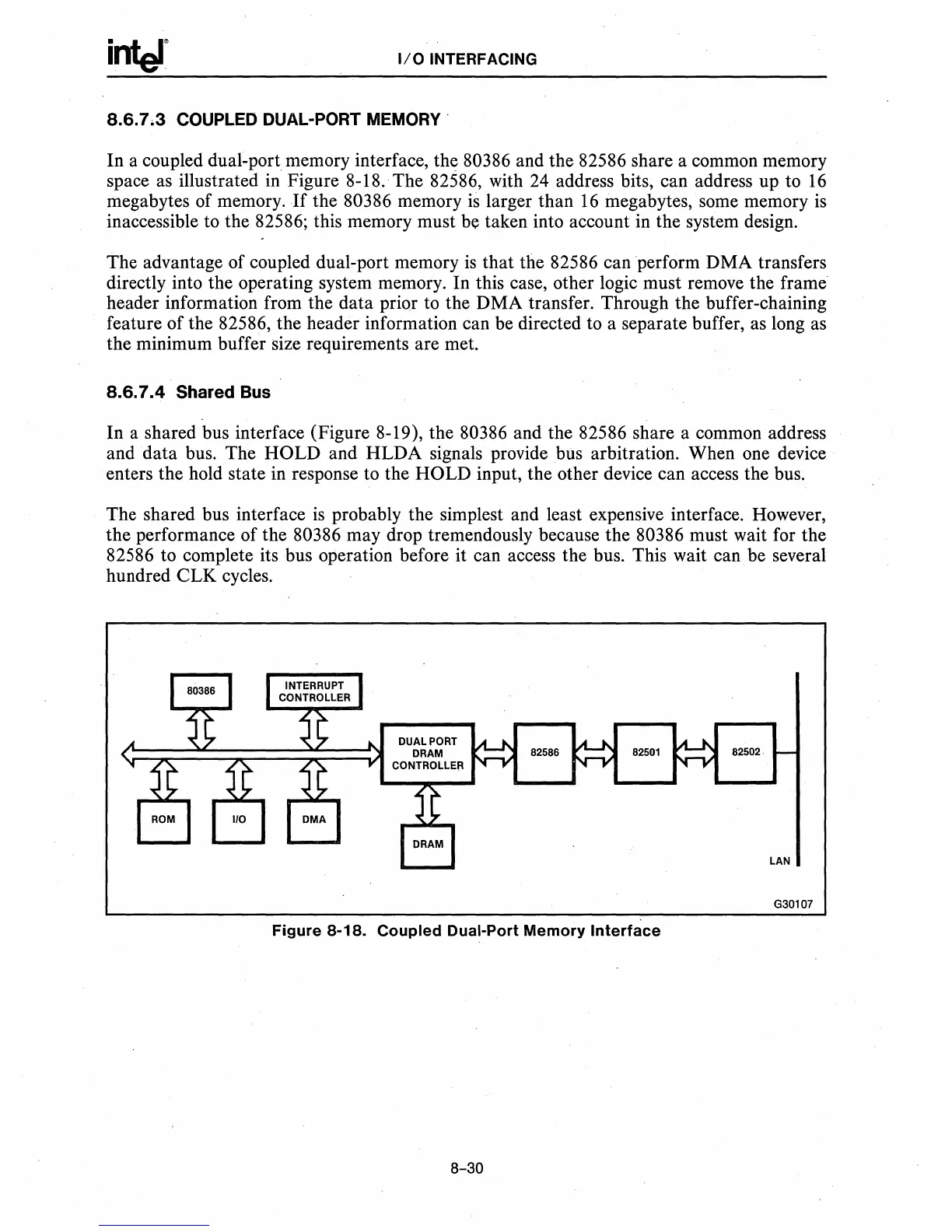 In a shared bus interface (Figure 8-19), the 80386 and the 82586 share a common address