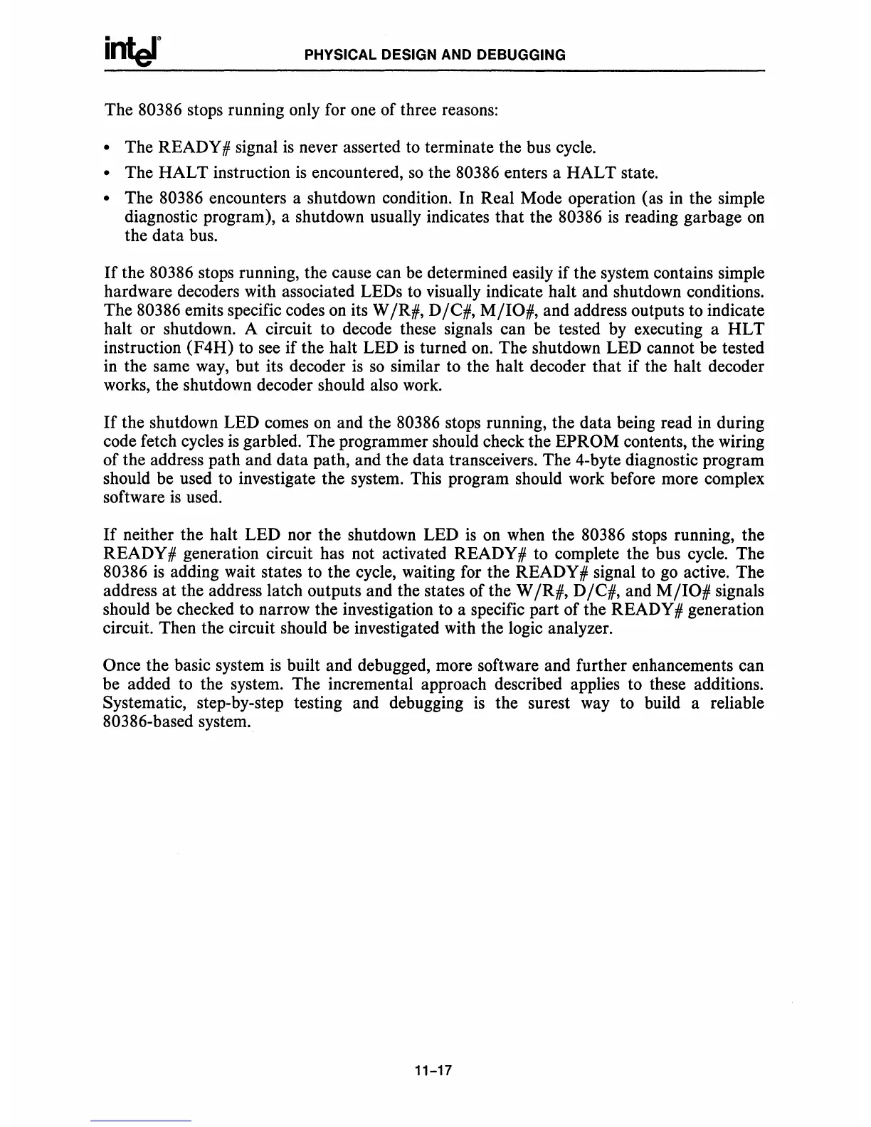 the 80386 stops running, the cause can be determined easily if the system contains simple