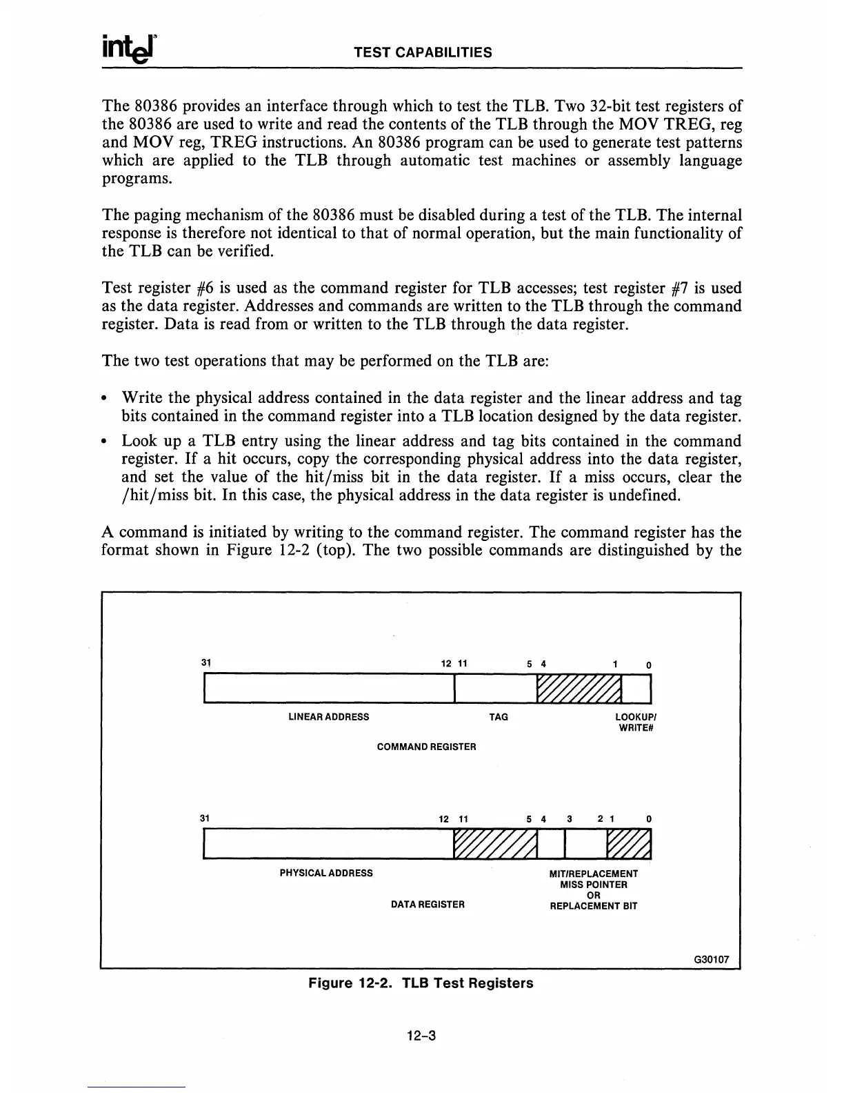 MOV reg, TREG instructions. An 80386 program can be used to generate test patterns