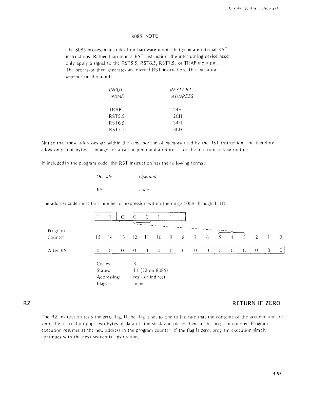 the RST5.5, RST6.5, RST7.S, or TRAP input pin.