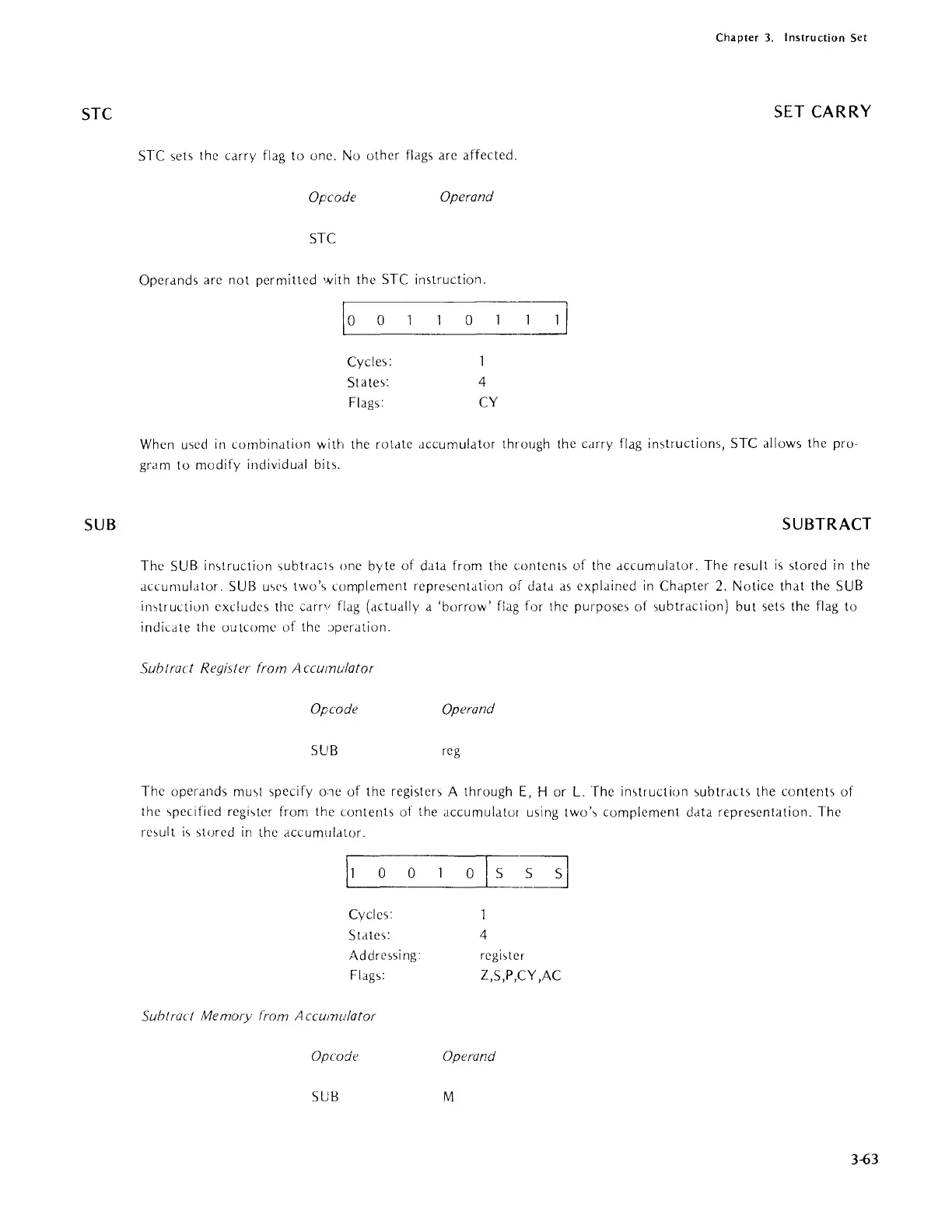 Intel 8080 - STC, SUB