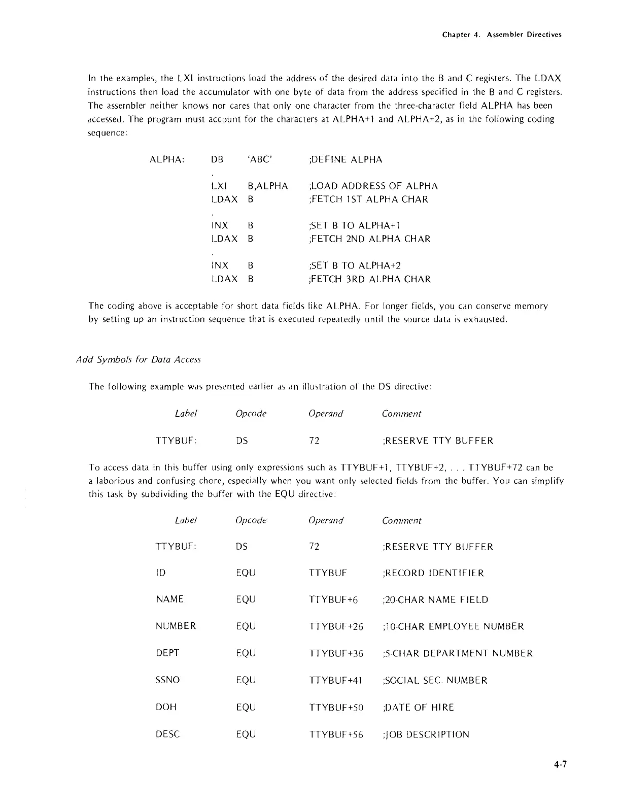 acceptable for short data fields like ALPHA. For longer fields, you can conserve memory