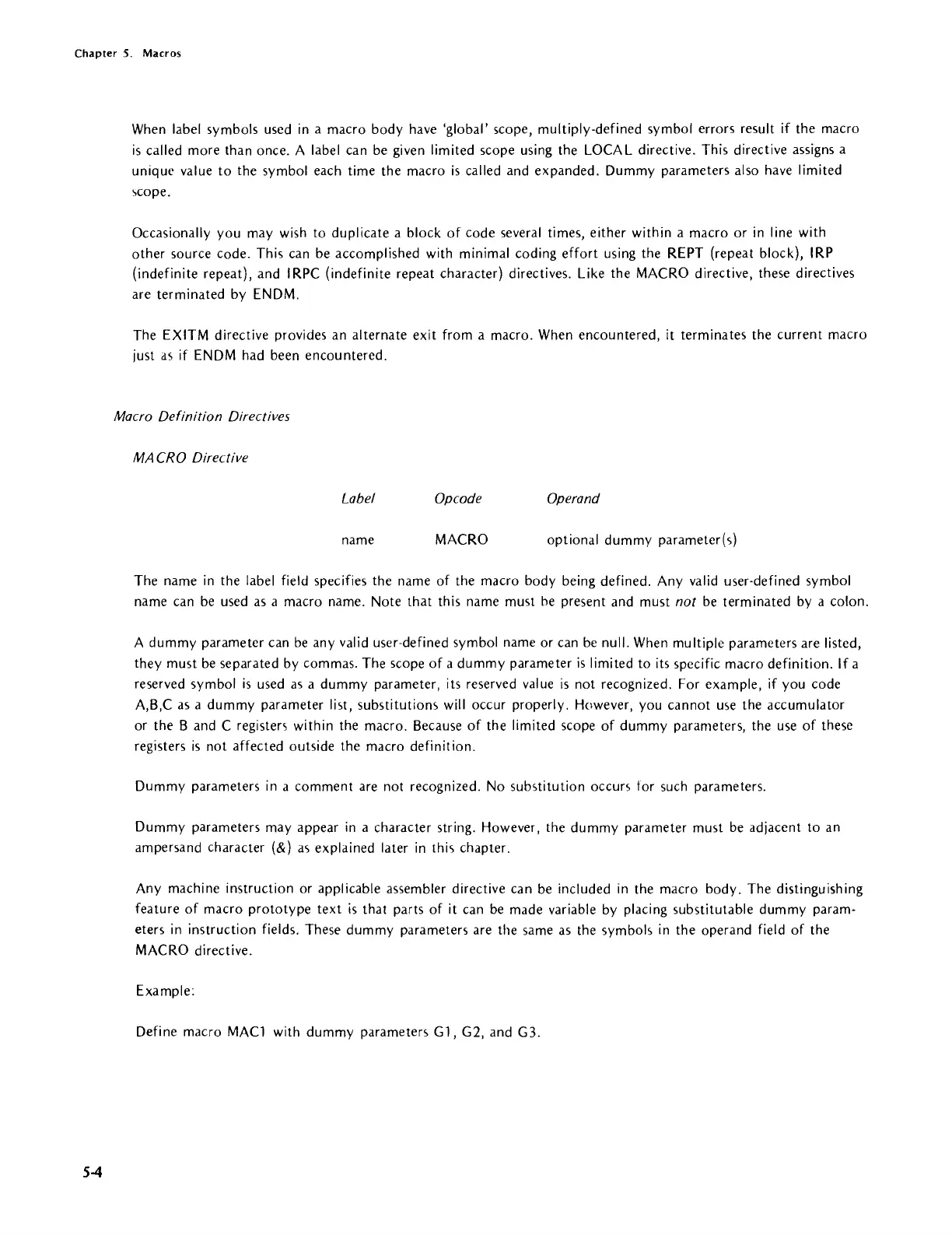 (indefinite repeat), and IRPC (indefinite repeat character) directives. Like the MACRO directive, these directives