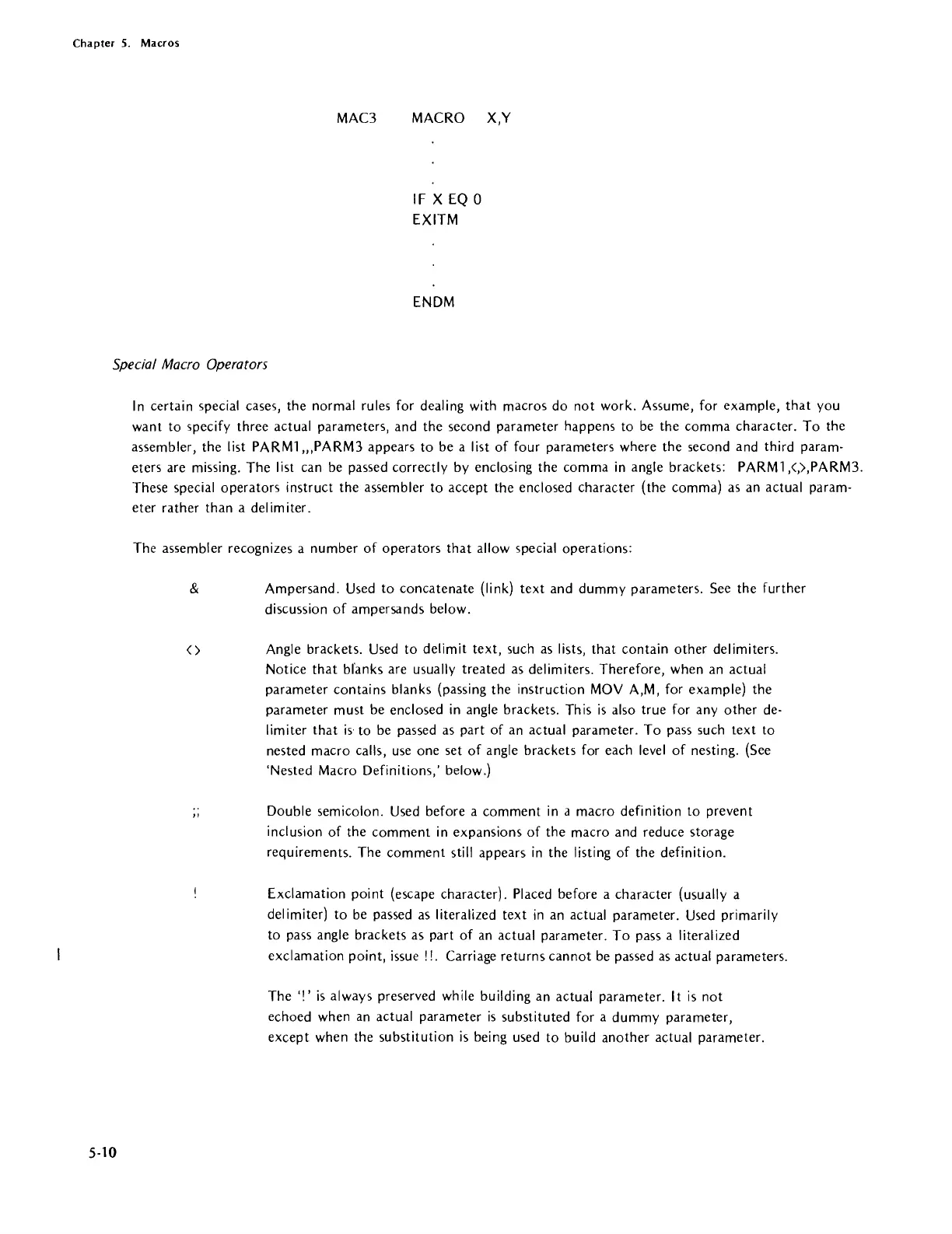 These special operators instruct the assembler to accept the enclosed character (the comma)